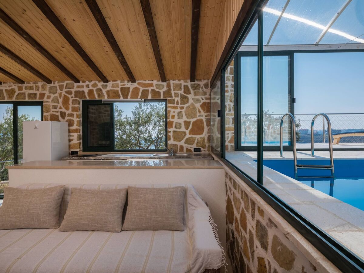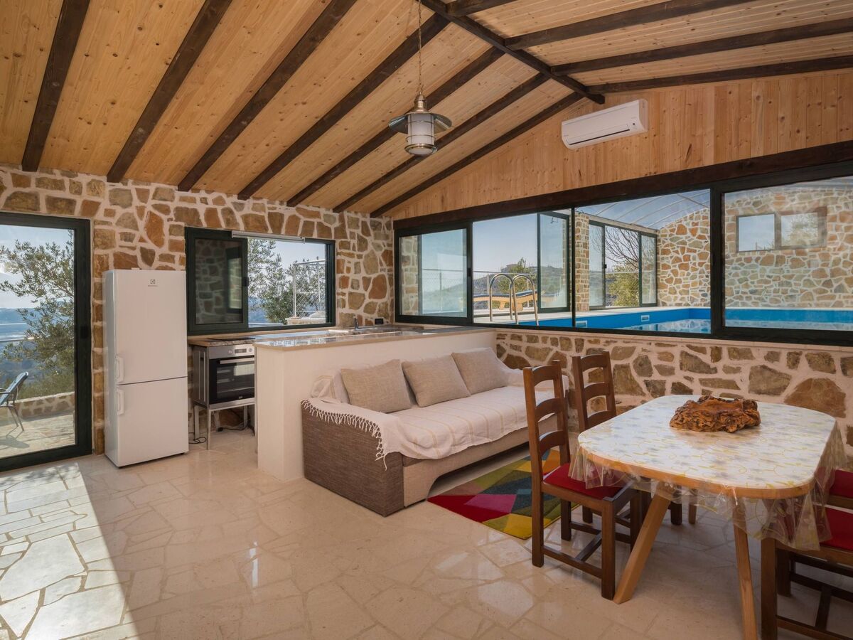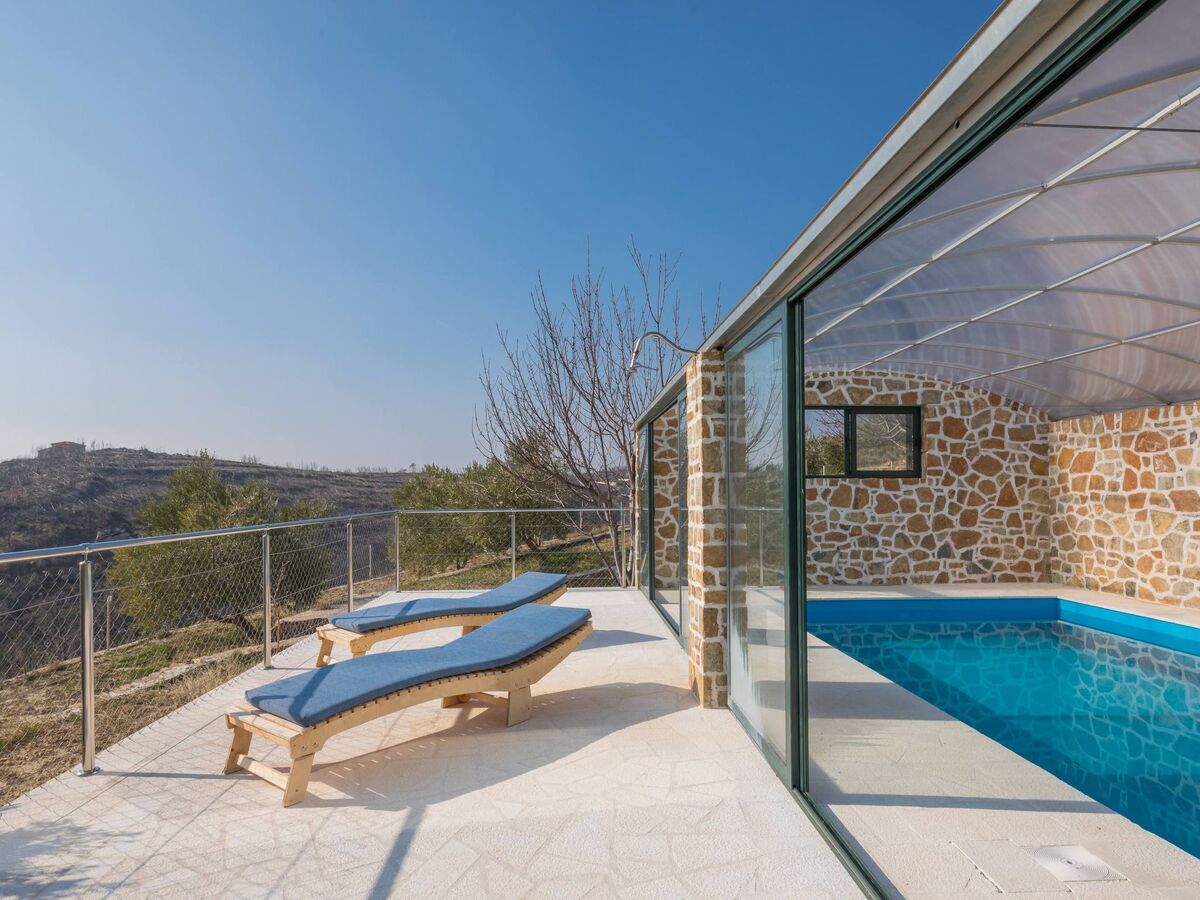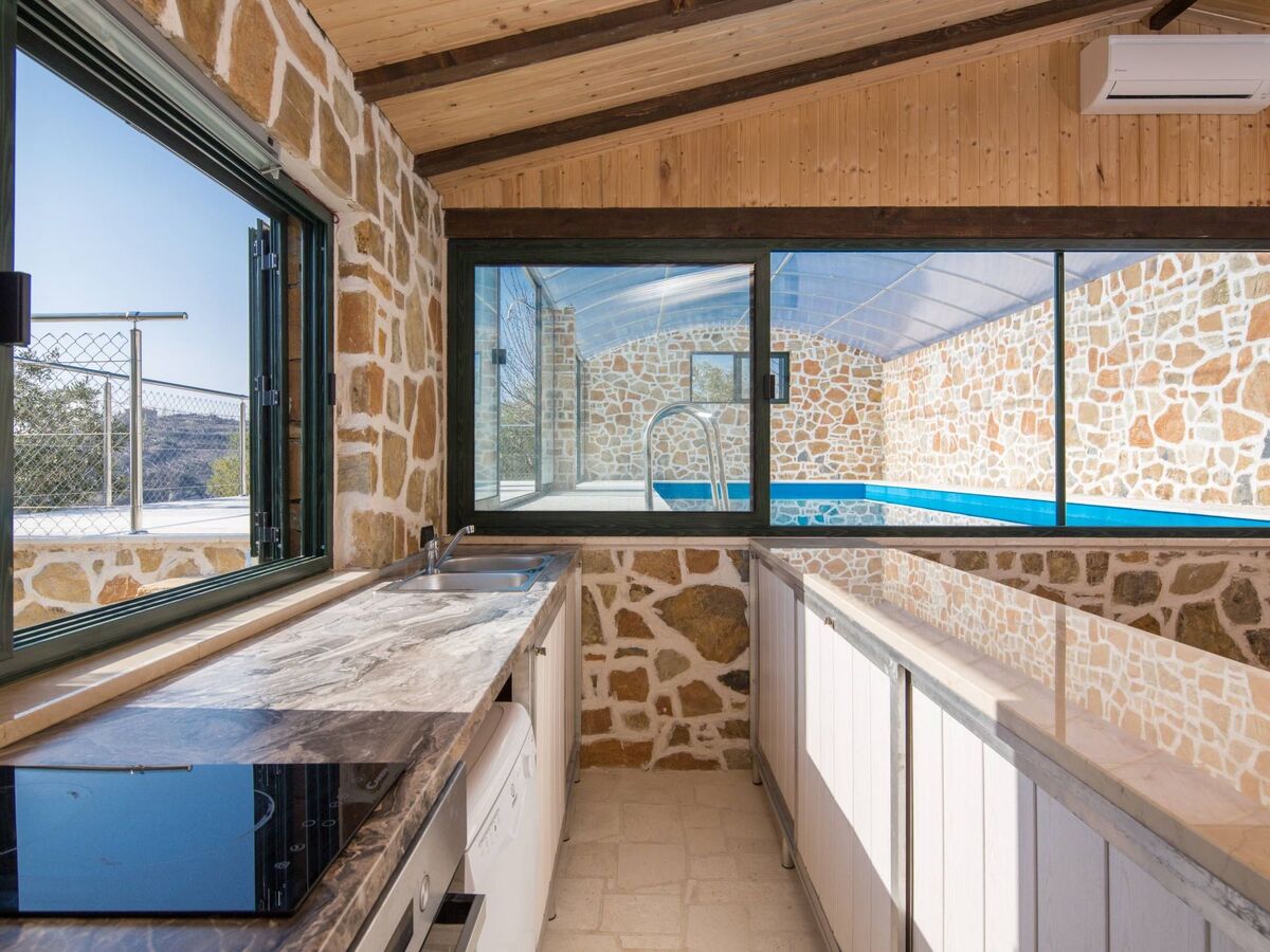 After a few rounds of swimming, you can relax on the sun loungers on the terrace (which is equipped with garden furniture with four chairs and a wooden table) and enjoy an extensive panoramic view over the mountainous landscape as far as the sea.