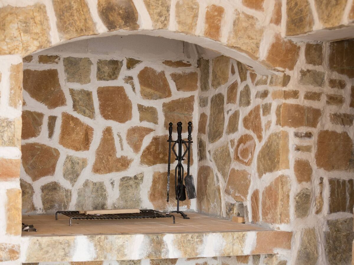 The big open fireplace built into the wall enhances the rustic atmosphere and exudes cosy warmth on cooler evenings.