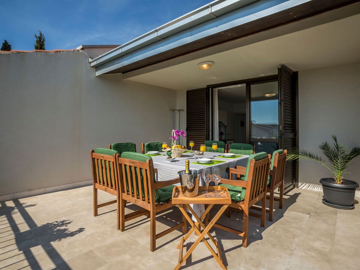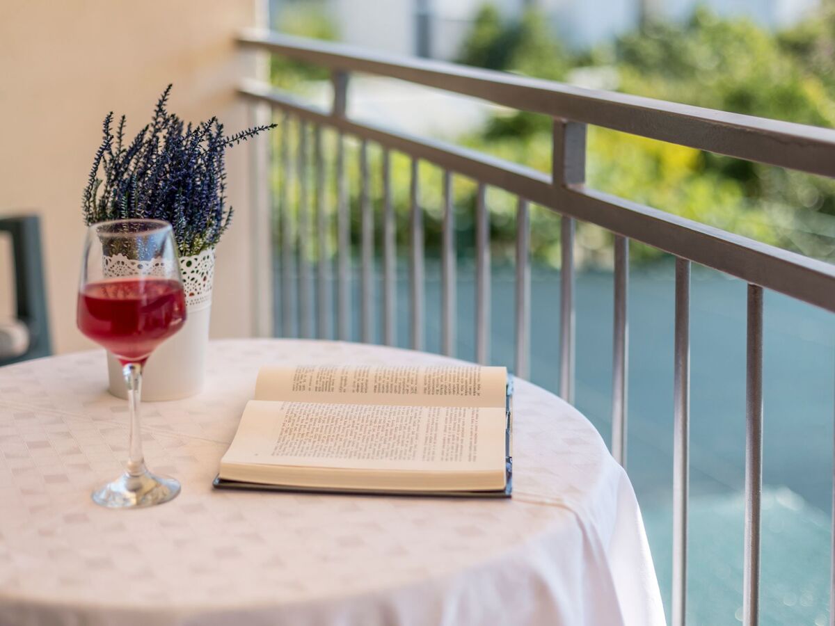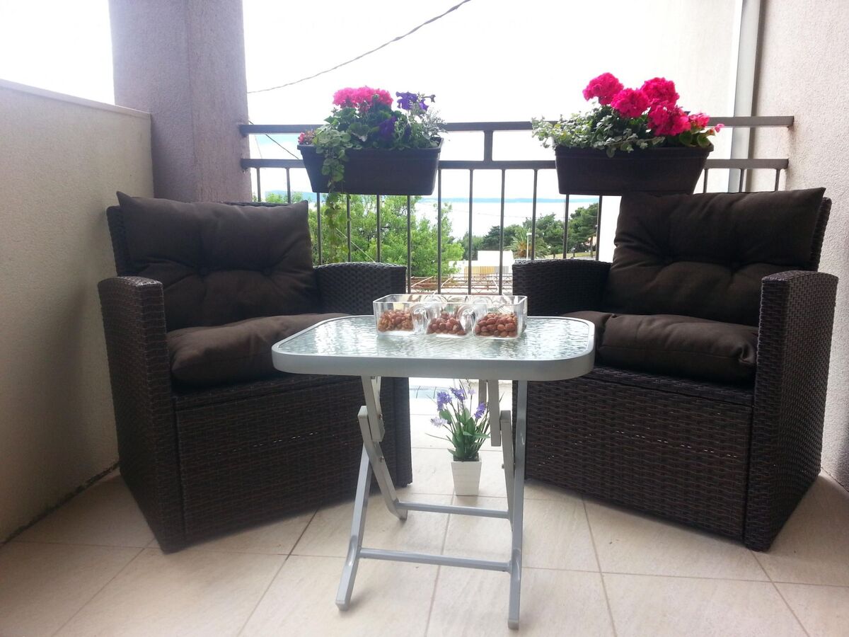 Vous pourrez profiter d'une vue magnifique sur la mer depuis le balcon et la terrasse, qui sont dotés de meubles de jardin.