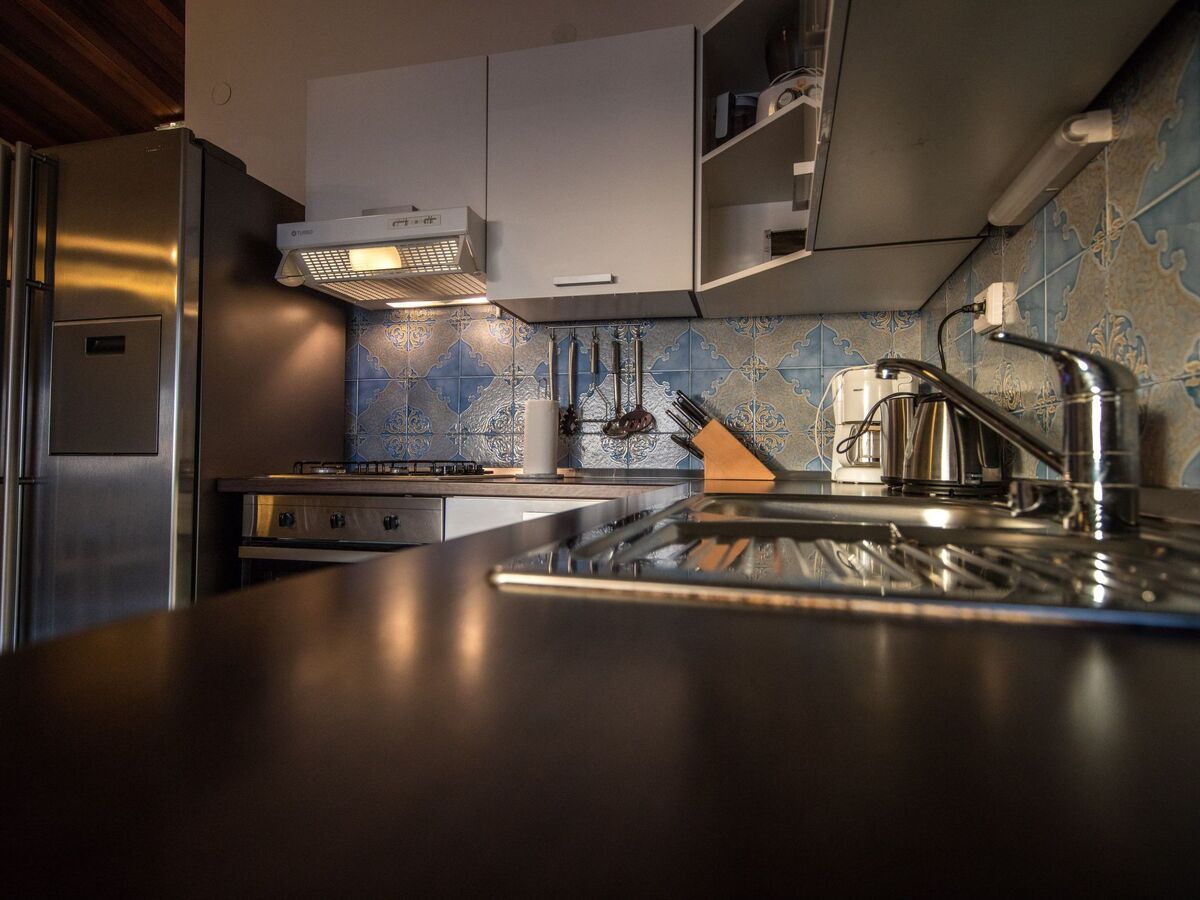 The three apartments each have an open living room with a fully-equipped kitchen.