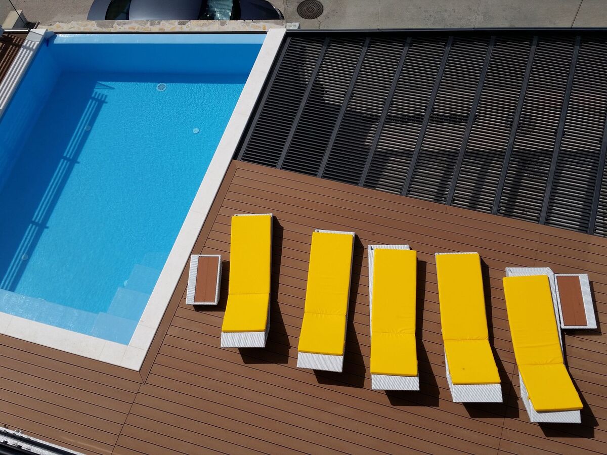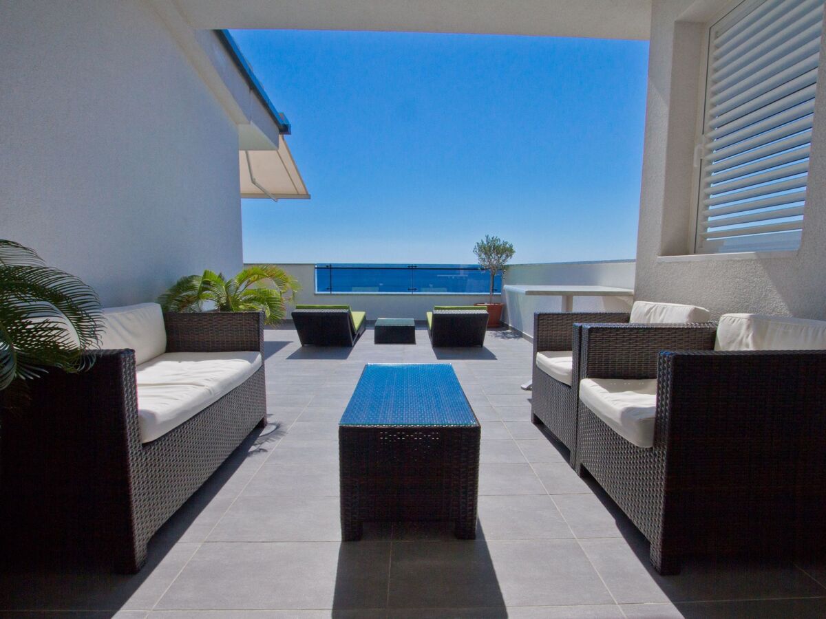 Or you can withdraw to one of the sun loungers under the shady awning during the hot midday hours and enjoy the extensive sea view over the blue Adriatic.