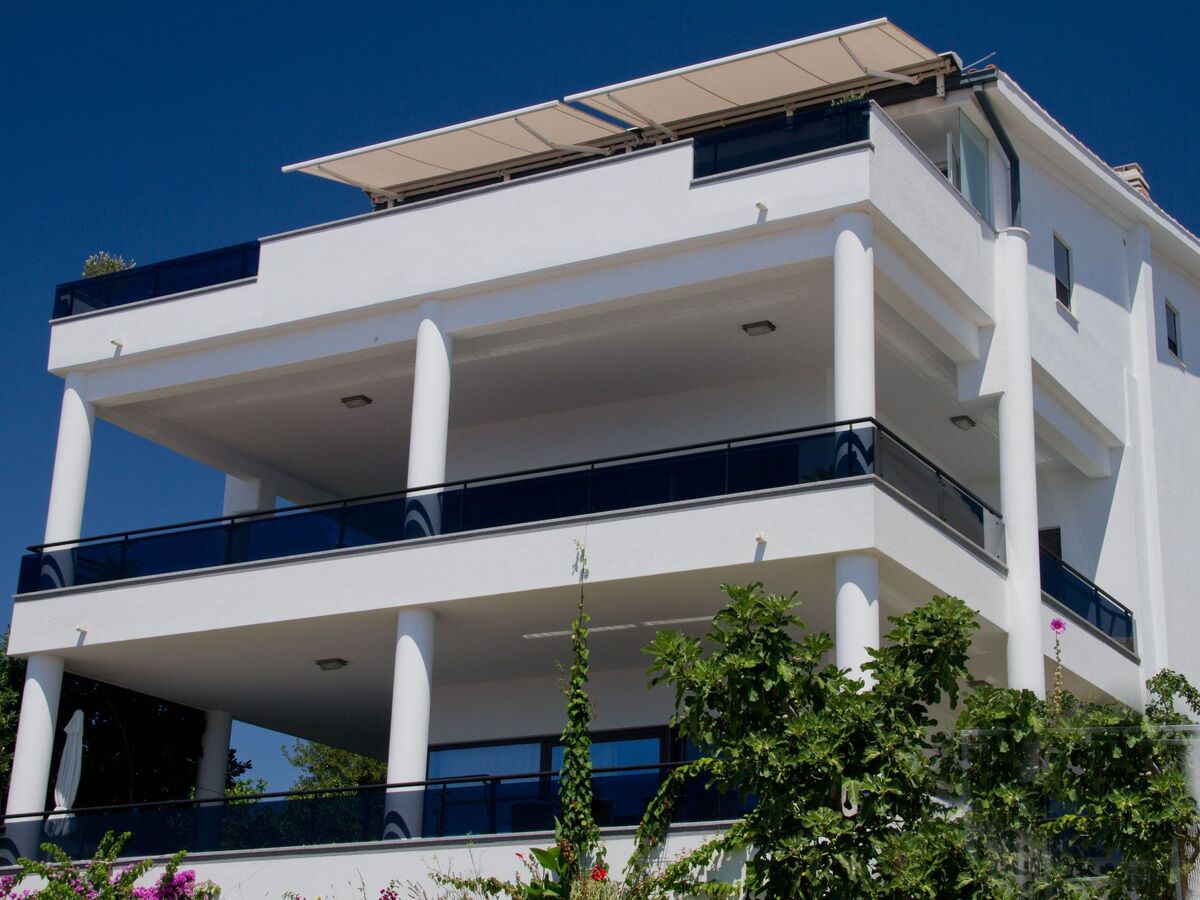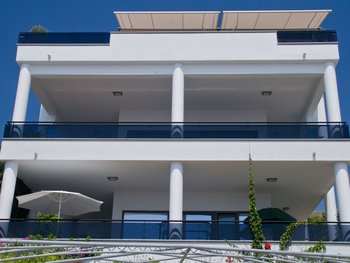 Newly built (2016), detached designer holiday house with a private pool, a grill area and a children’s playground in the green garden and a panoramic sea view from the big sunny balconies