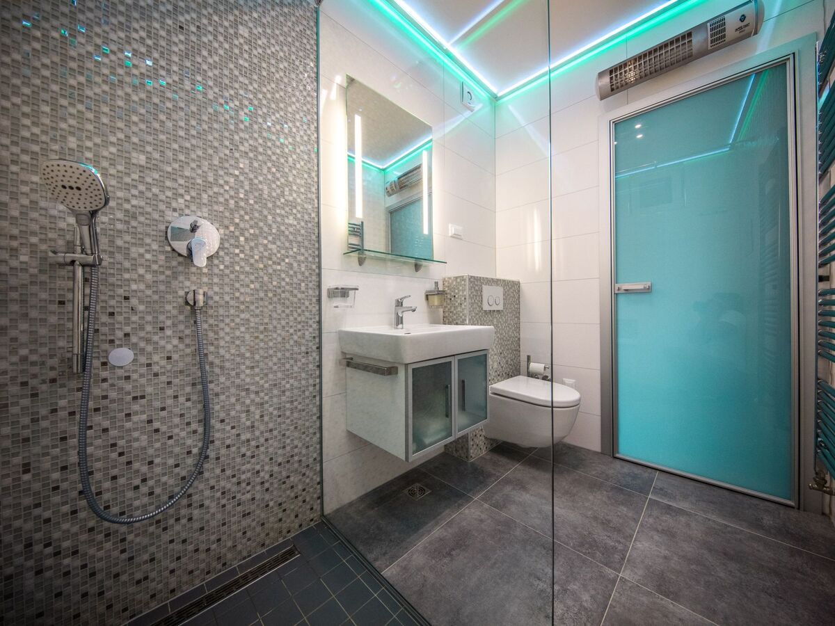 One of the ten luxury daylight bathrooms has a bath with a shower attachment, while the other nine are fitted with a walk-in shower cubicle.