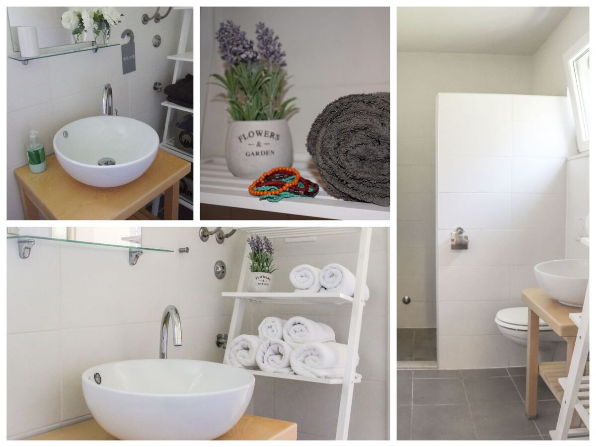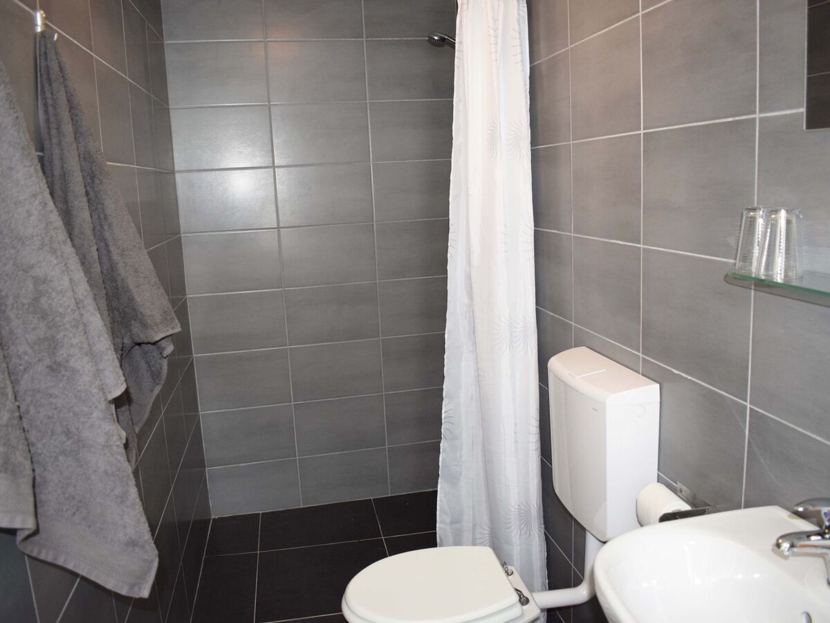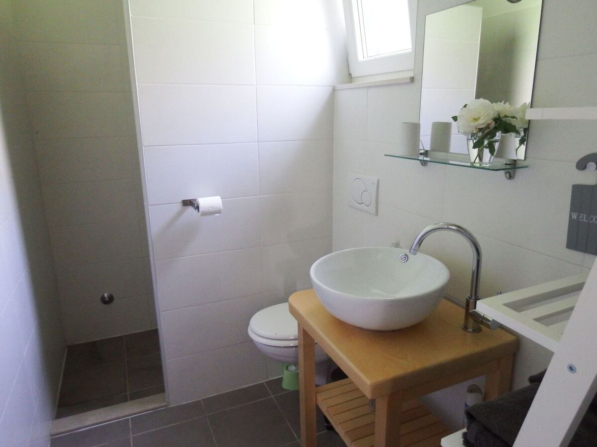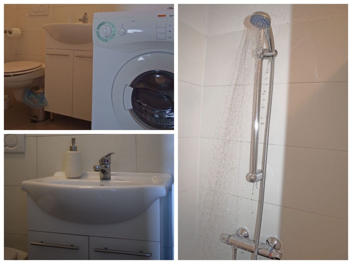 Also on the ground floor is the toilet with washbasin and shower facilities, as well as a washing machine.