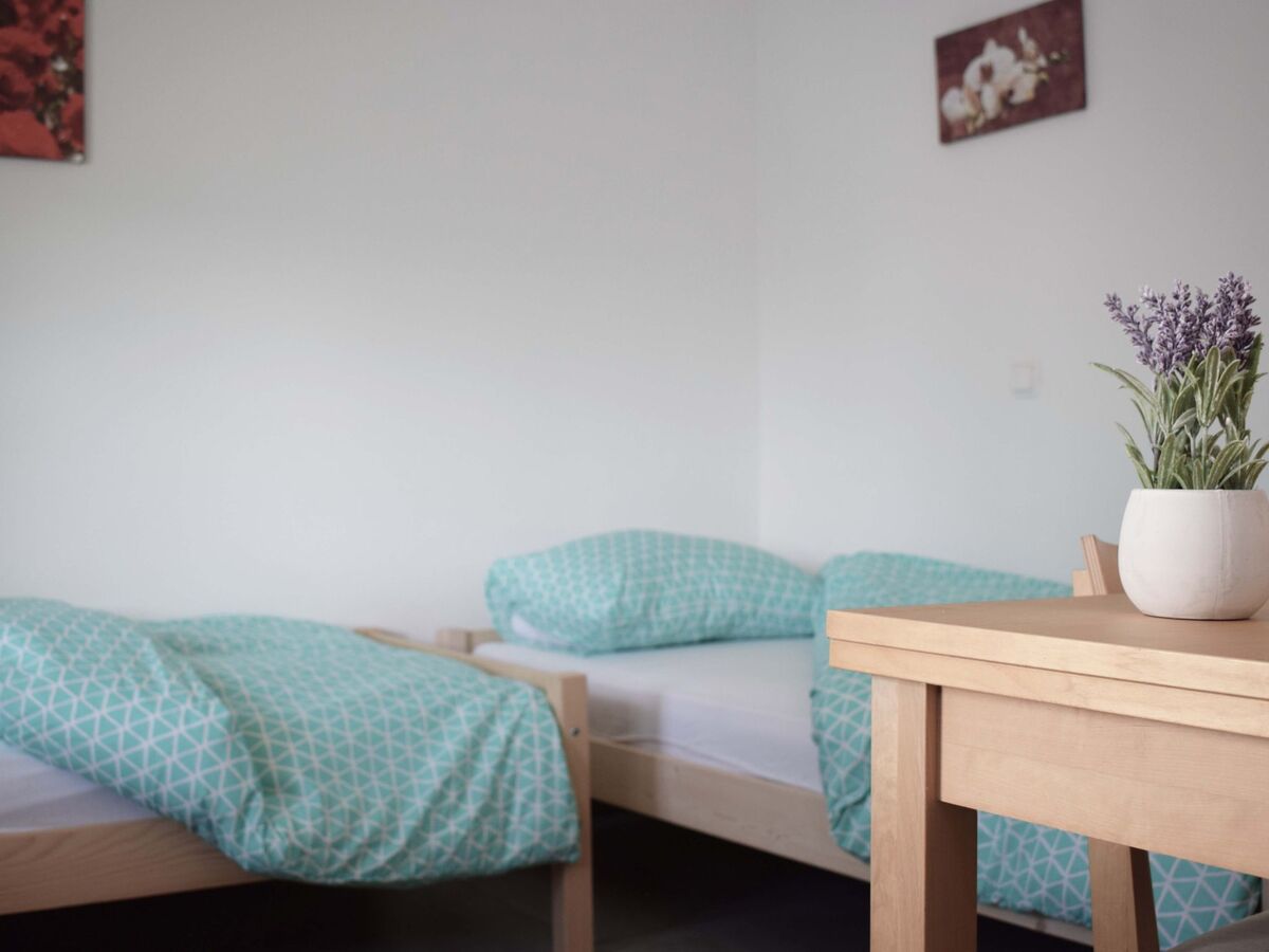 On the first floor you will find two bedrooms, 1 bedroom has a double bed and a single bed.