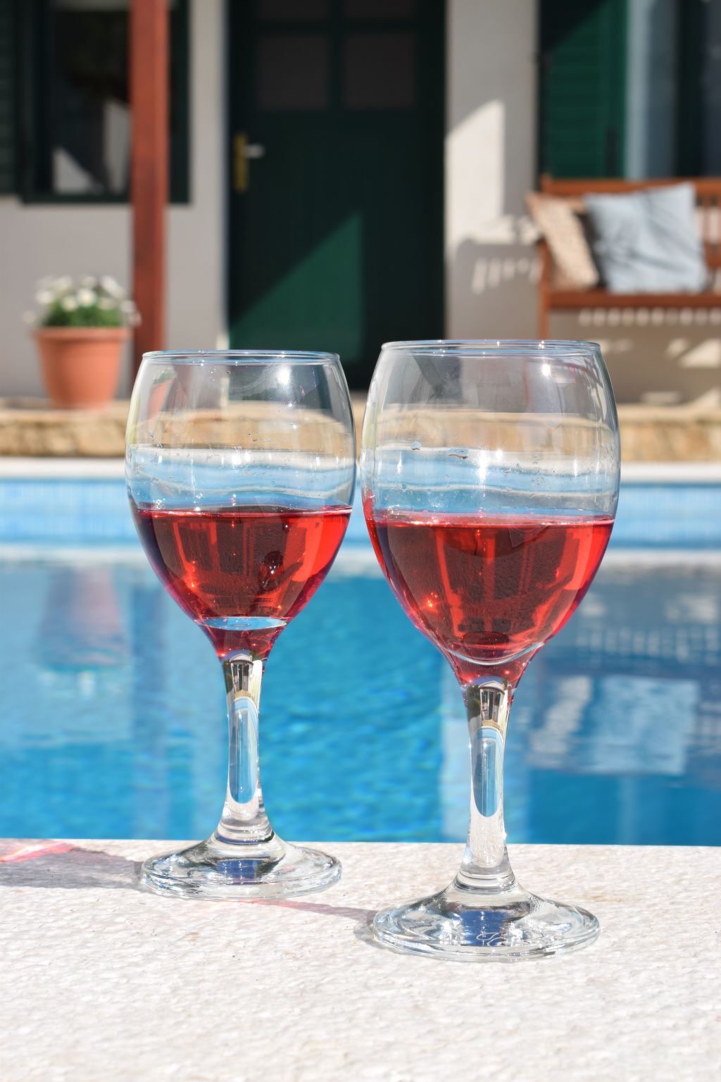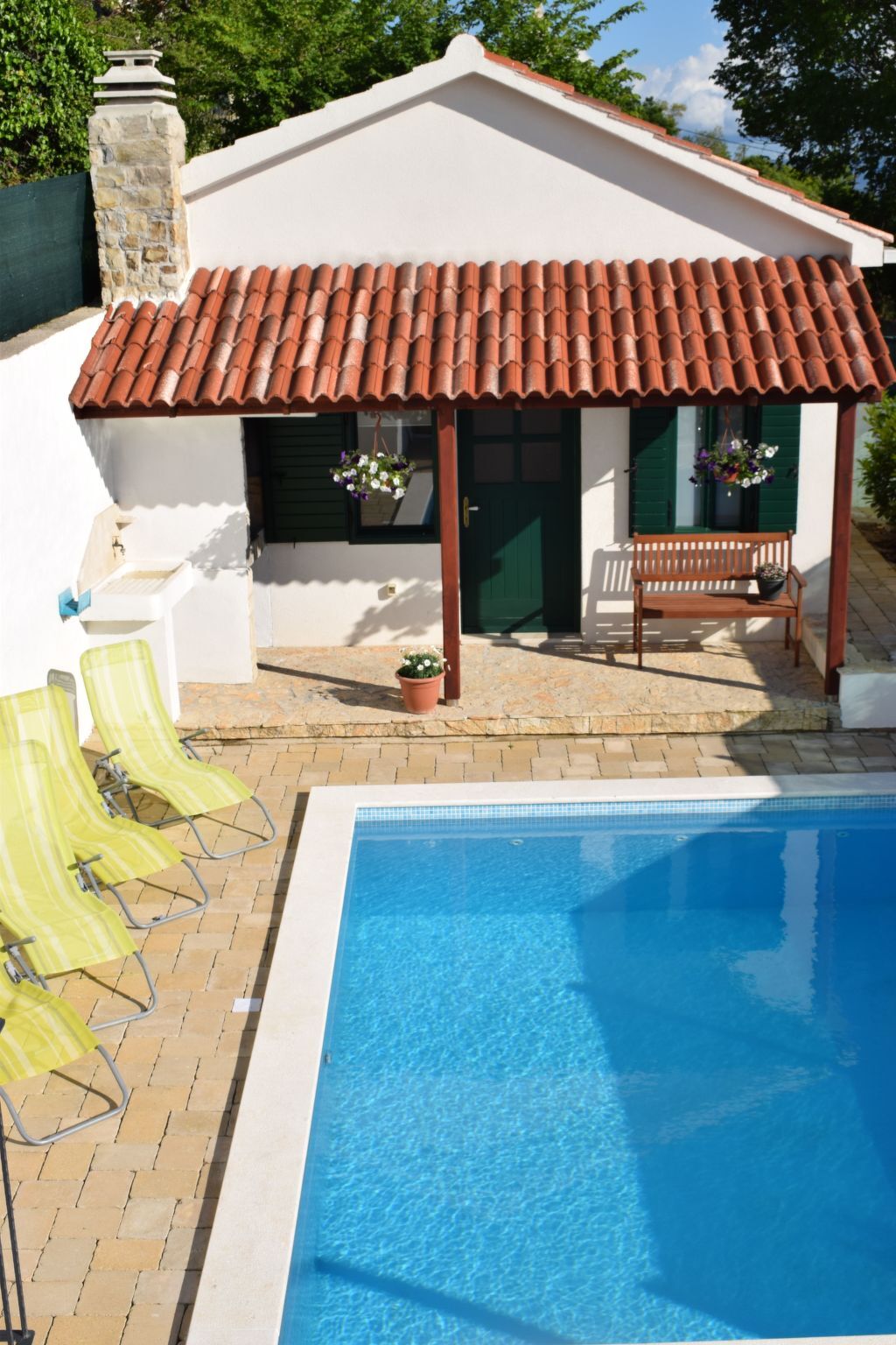 By the pool you will find relaxing chairs.