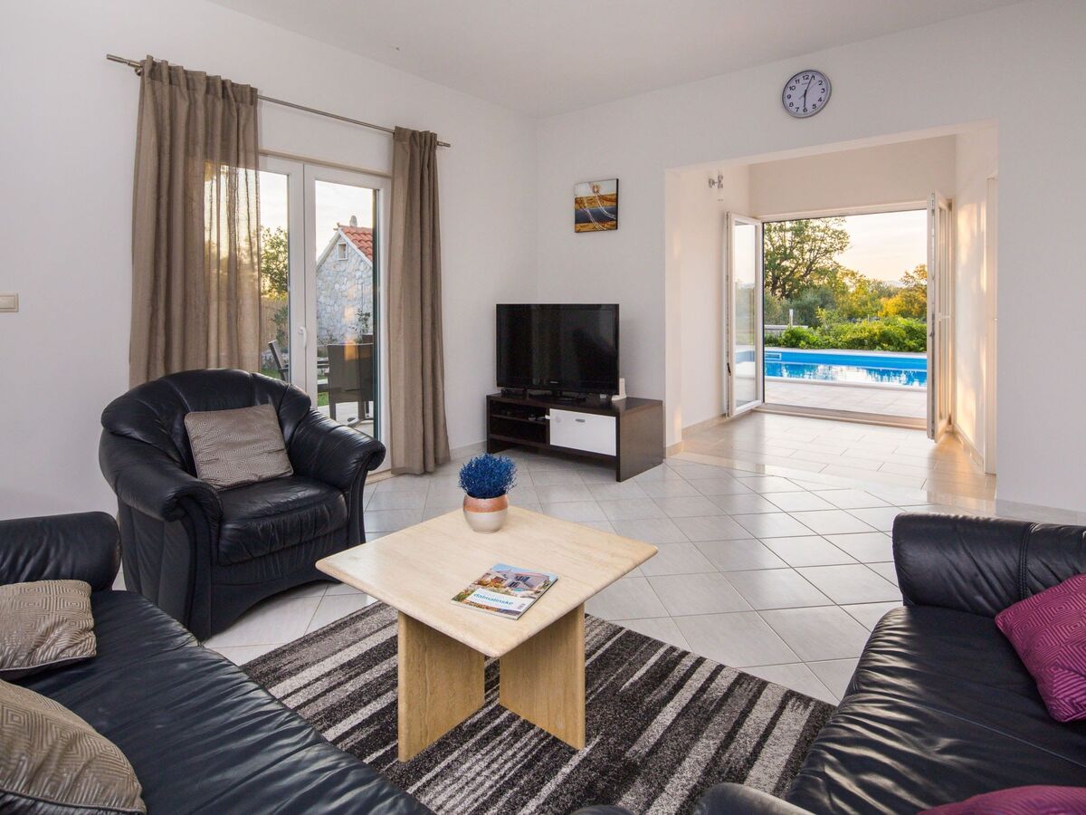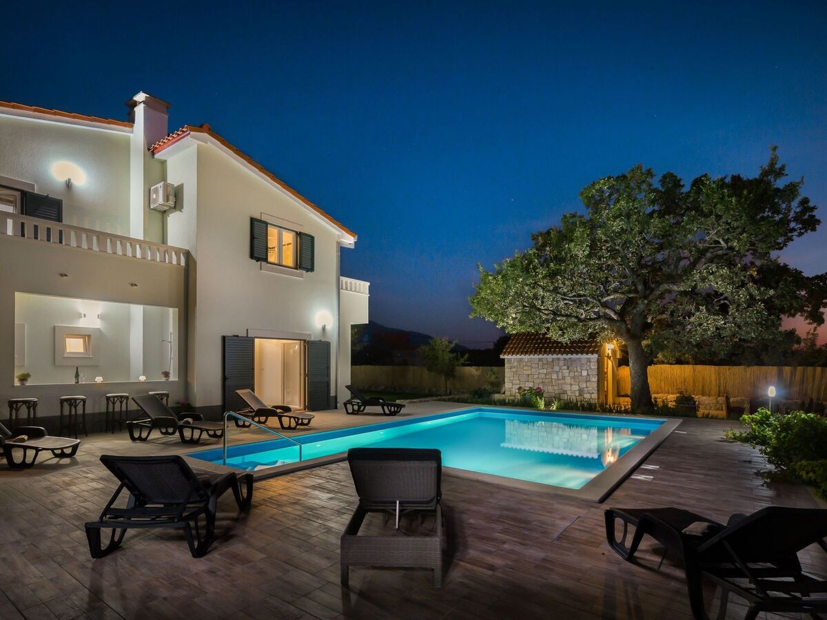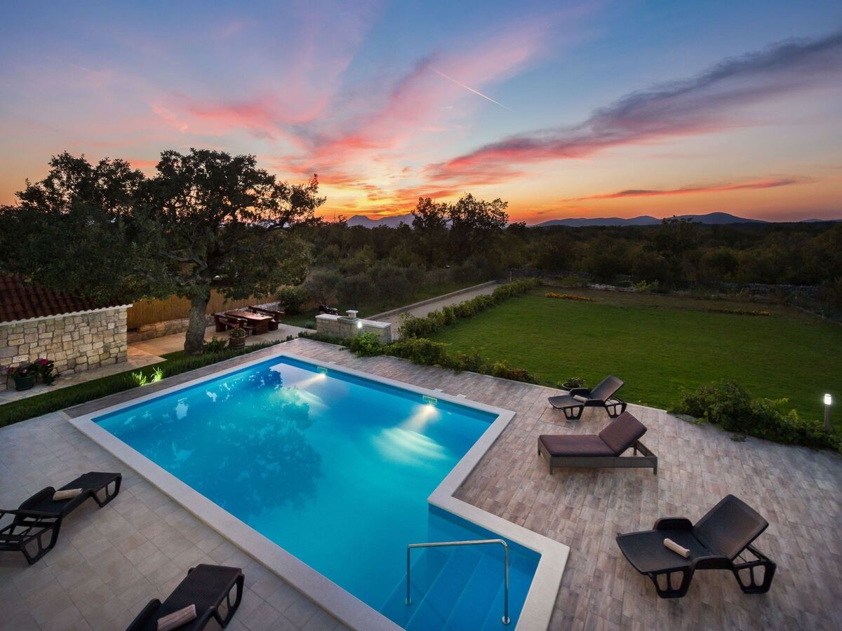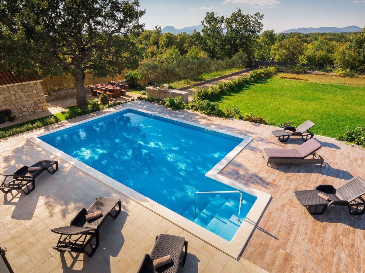 This holiday villa with a modern and tasteful interior is situated on the edge of a forest in a quiet residential area of the little village Katuni by the blue Adriatic coast along the Makarska Riviera.