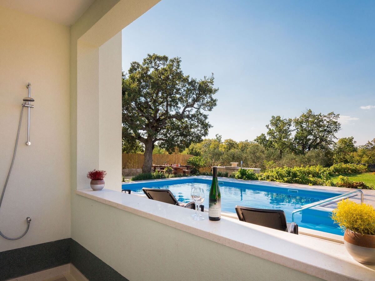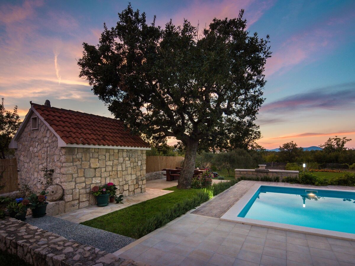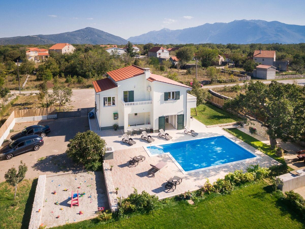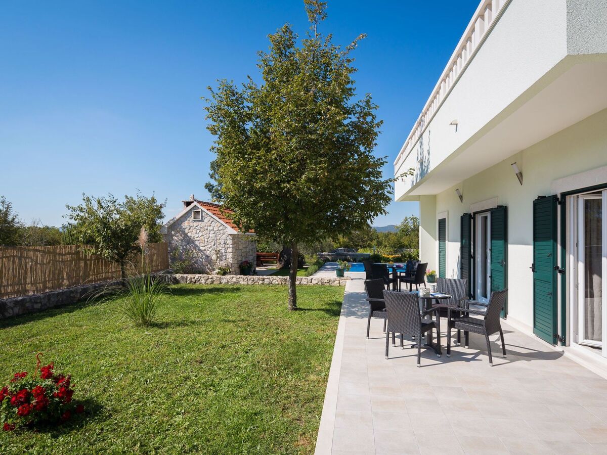 This holiday villa with a modern and tasteful interior is situated on the edge of a forest in a quiet residential area of the little village Katuni by the blue Adriatic coast along the Makarska Riviera.