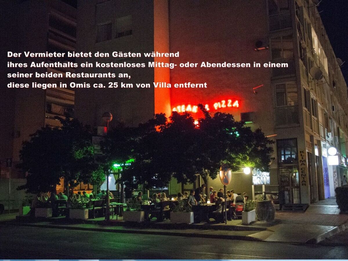 The owner offers guests a free lunch or dinner in one of his two restaurants about 25km from Omis.