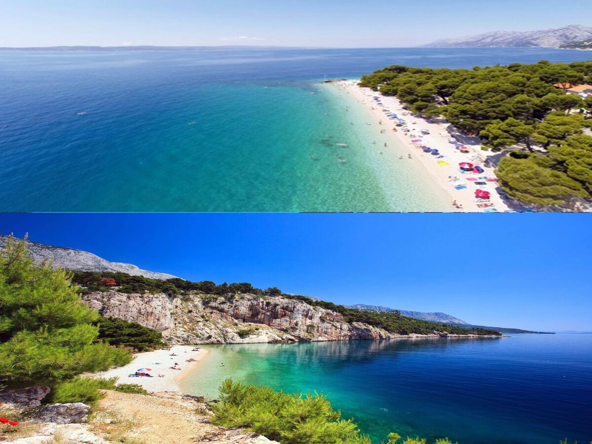 The nearest beach (Brela) with crystal clear water is about 13km away.