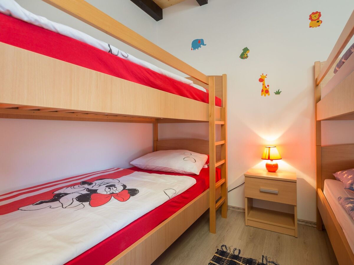 Two of the four bathrooms are each furnished with a double bed (180 x 200cm), the third has a larger double bed (200 x 200cm), the fourth has two bunk beds for four children.