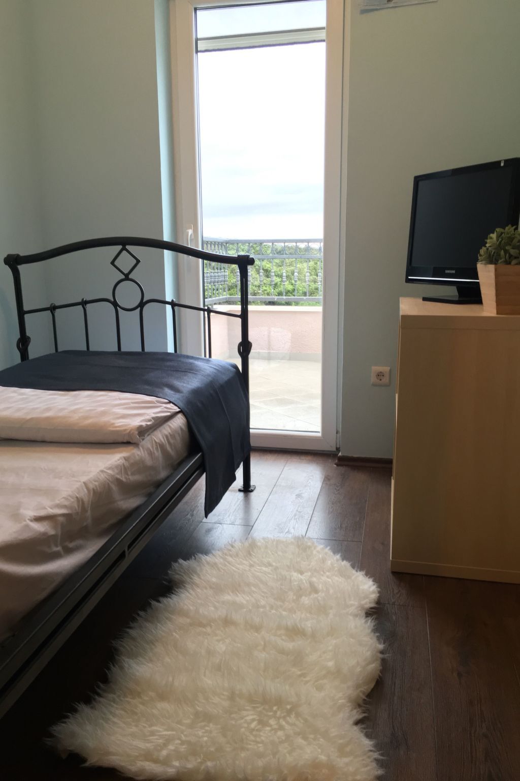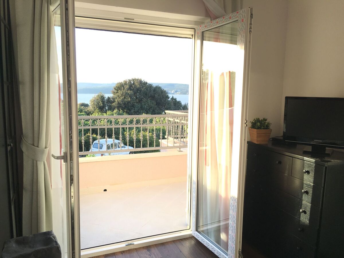 The bedroom balconies are furnished with deckchairs and have a beautiful view of the Adriatic.