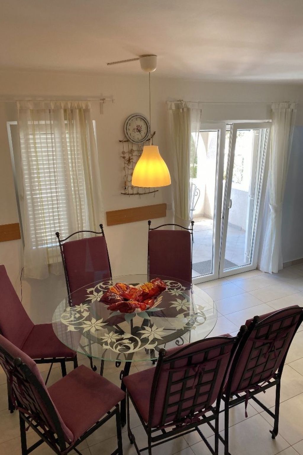 Six people can sit together at the large table or grill in the evening.