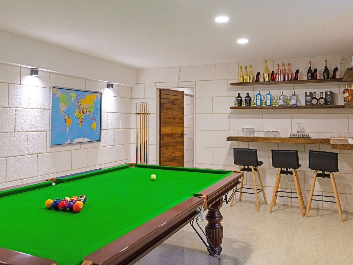 In the lower part of the house, there are sauna, fitness room, and game room where you can relax, train or have fun playing billiard, table tennis, darts or table soccer.