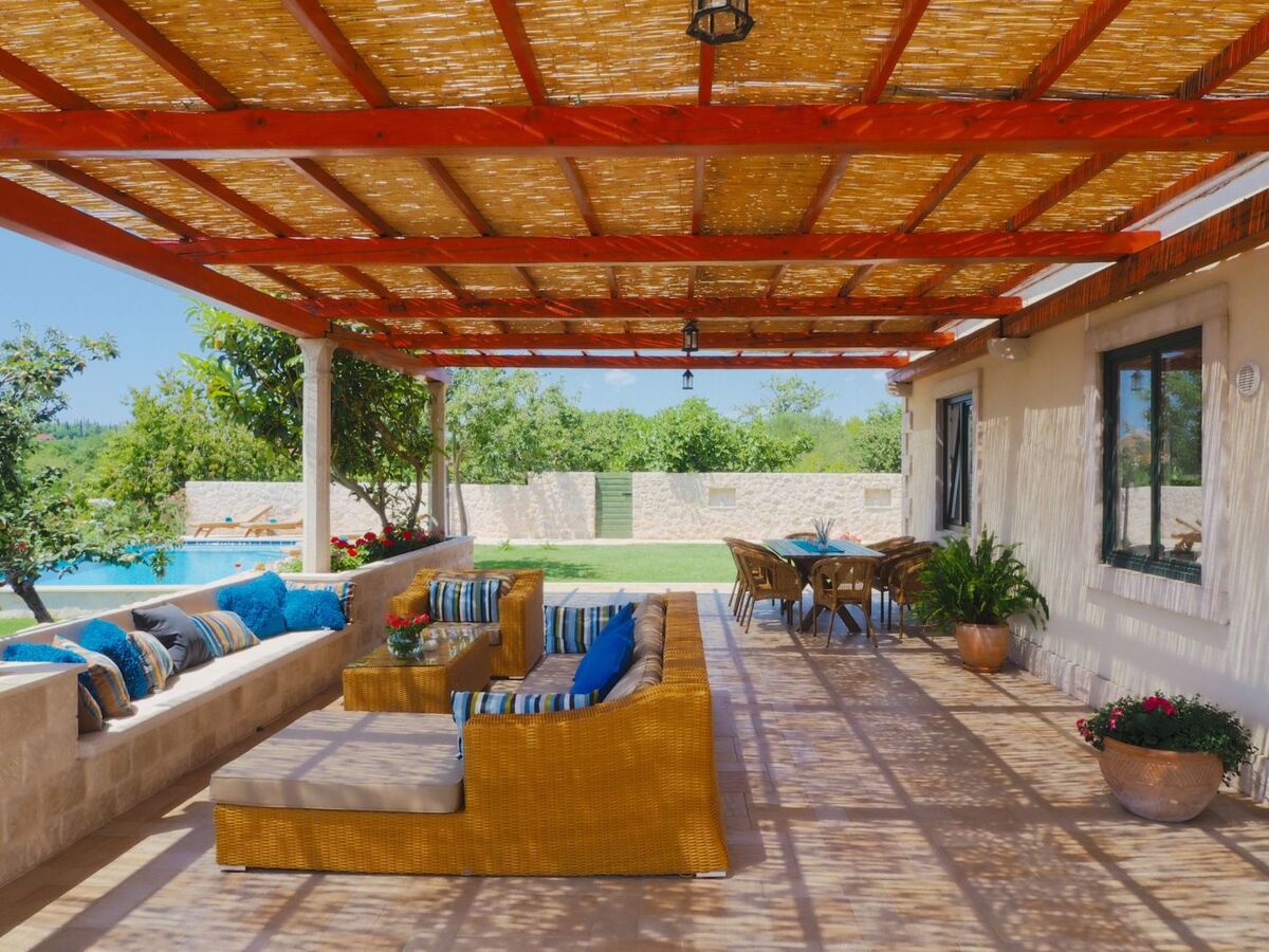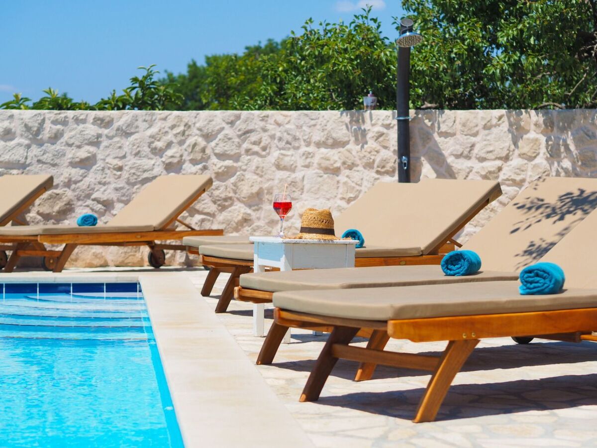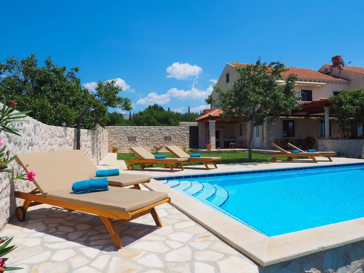In front of the villa there is a big terrace, a 40 sqm private swimming pool, BBQ and garden with olive trees.