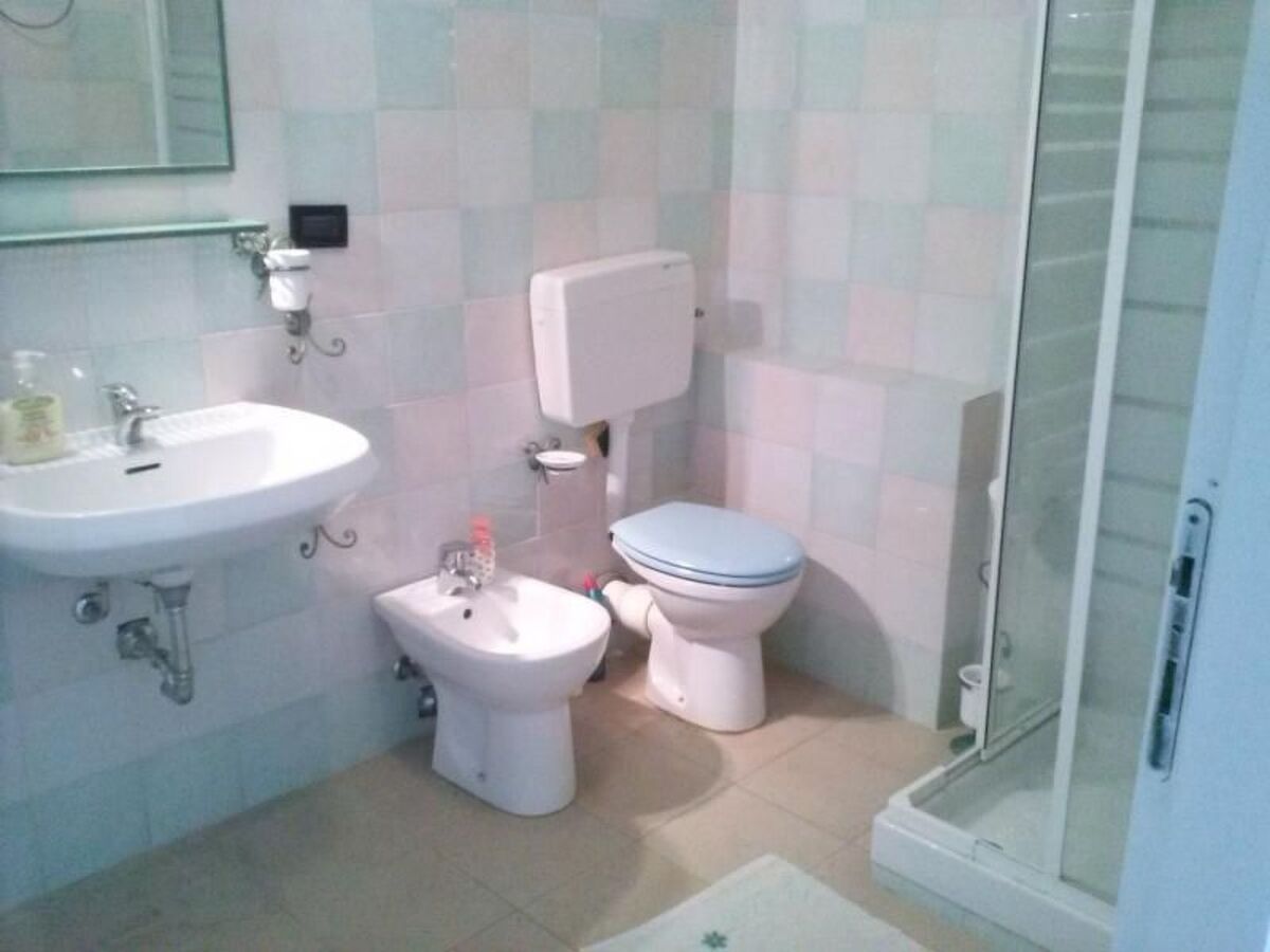 La salle de bain est équipée de toilettes, bidet, lavabo, douche et lave-linge.