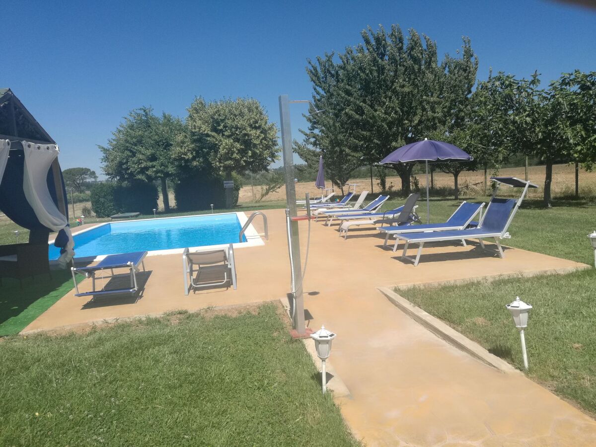 The pleasure of outdoor living is guaranteed by the private outdoor area, equipped with a barbecue for unforgettable dinners under the stars, and the private swimming pool, set in an idyllic landscape, ideal for relaxing moments.