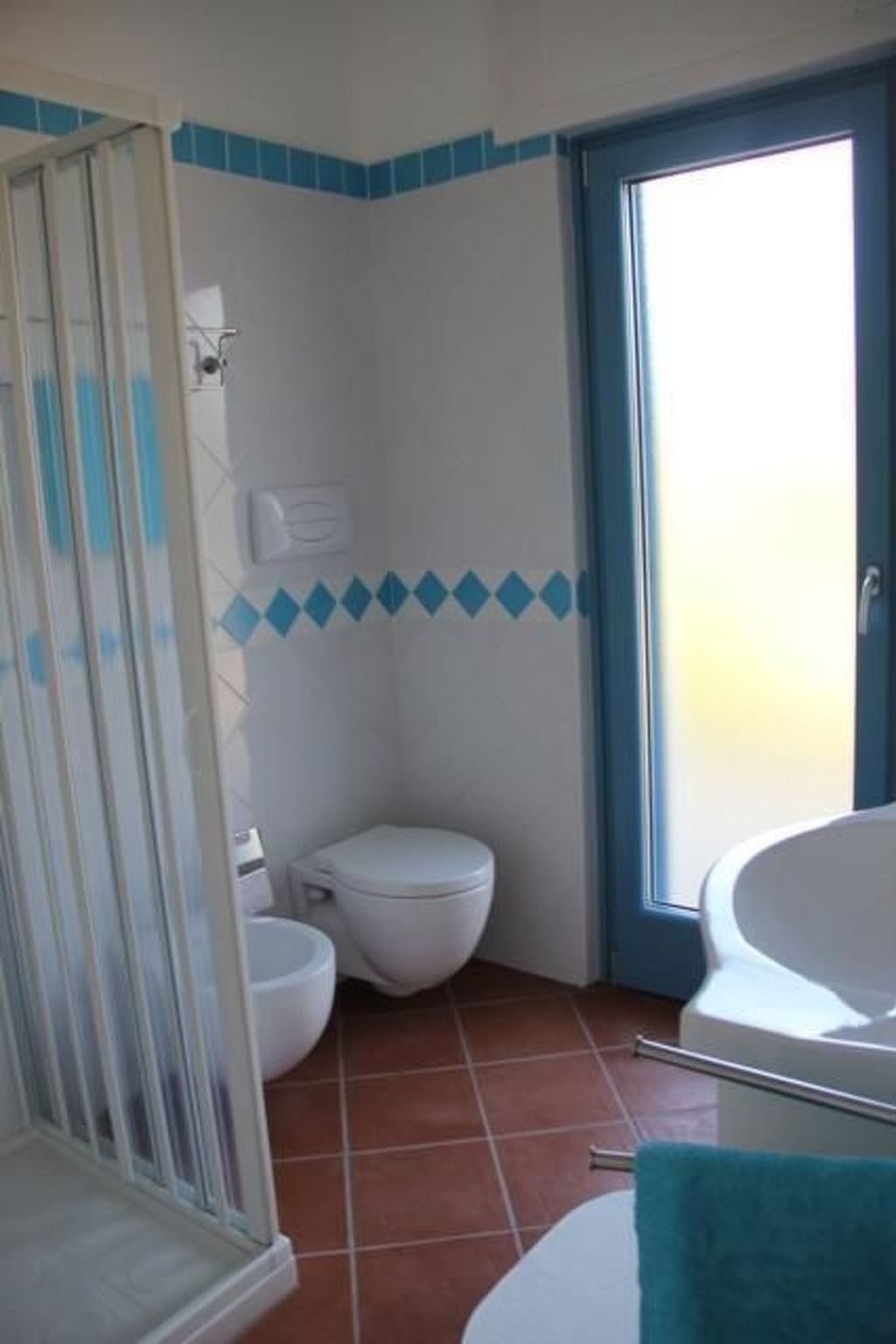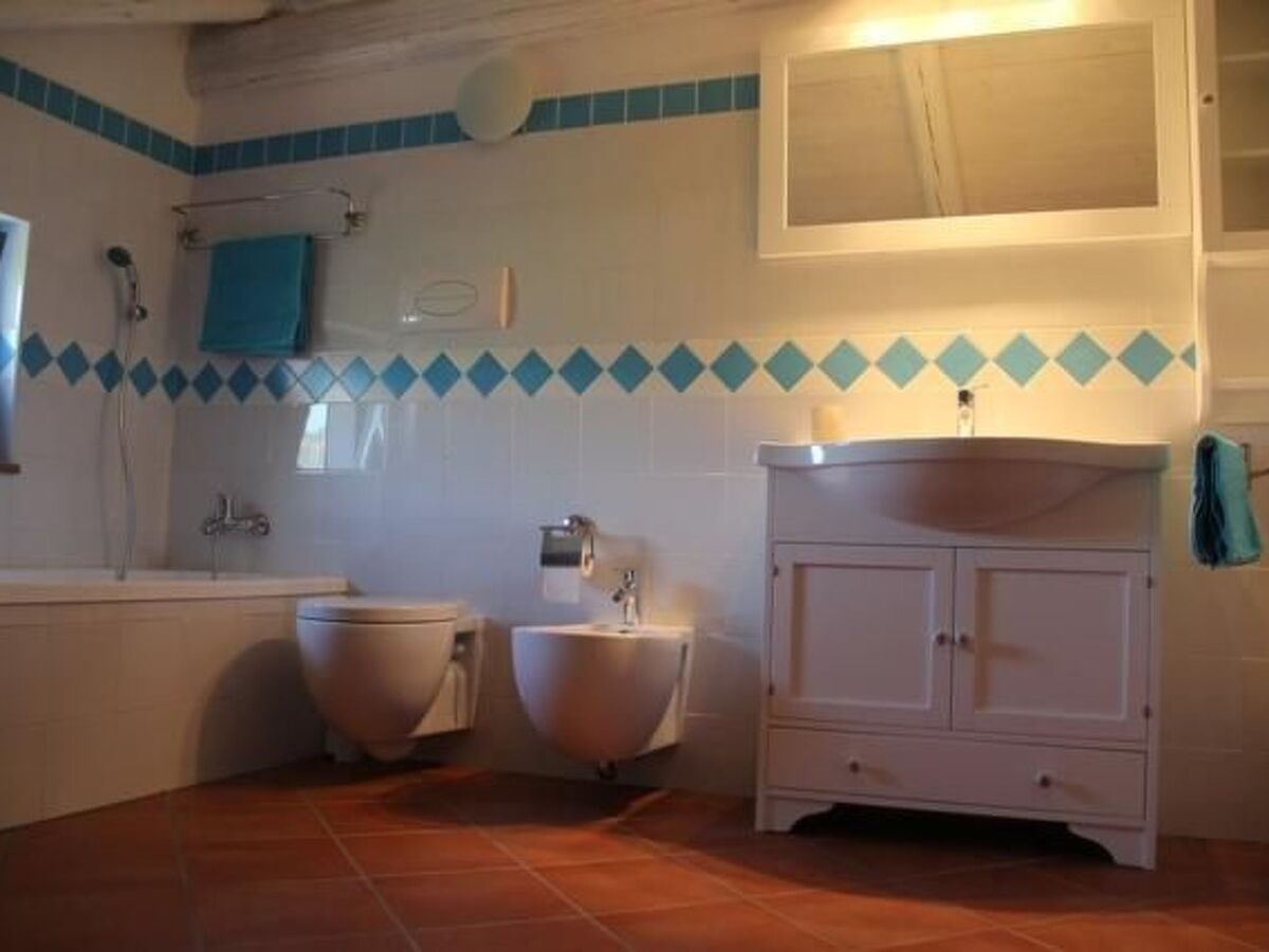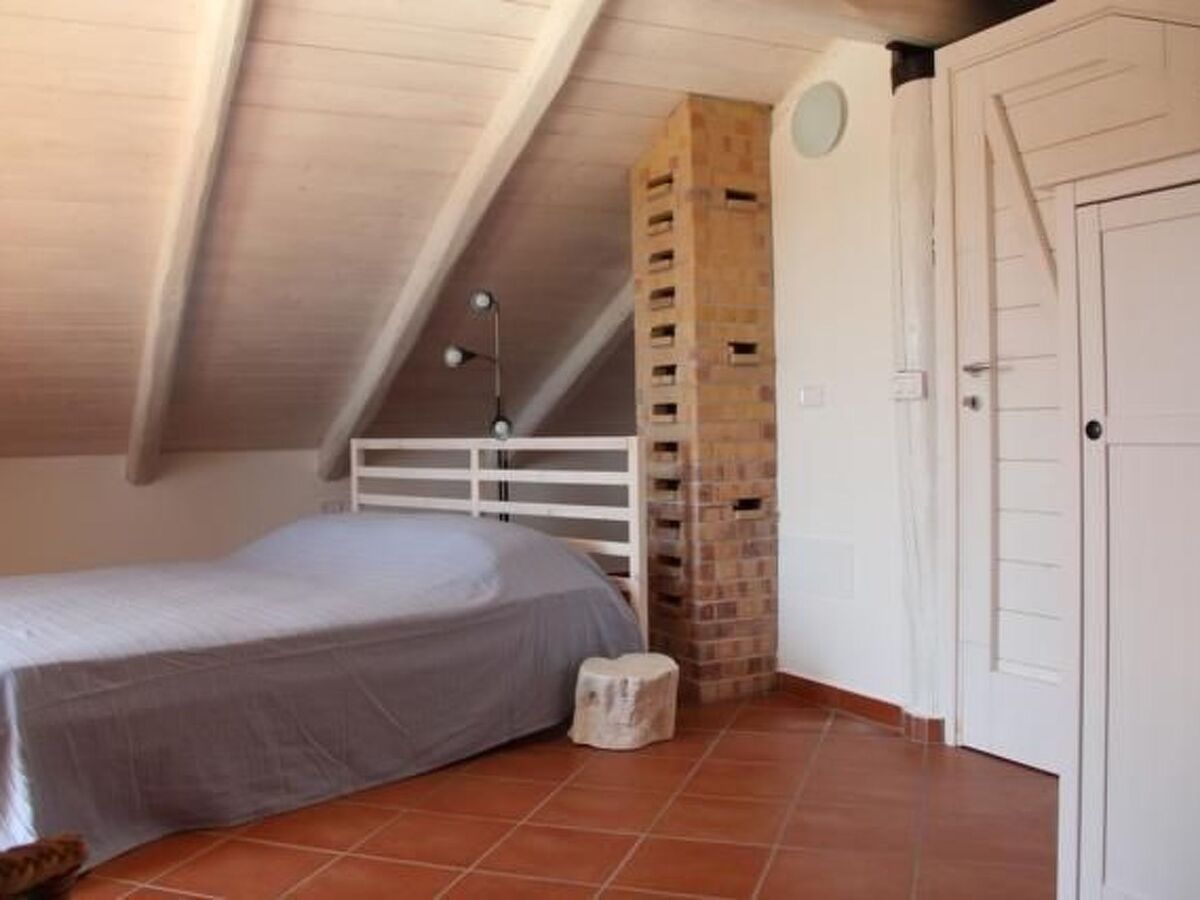 On the upper floor, a spacious bedroom with a double bed and another bathroom equipped with a bidet and bathtub invite you to spend restful nights.