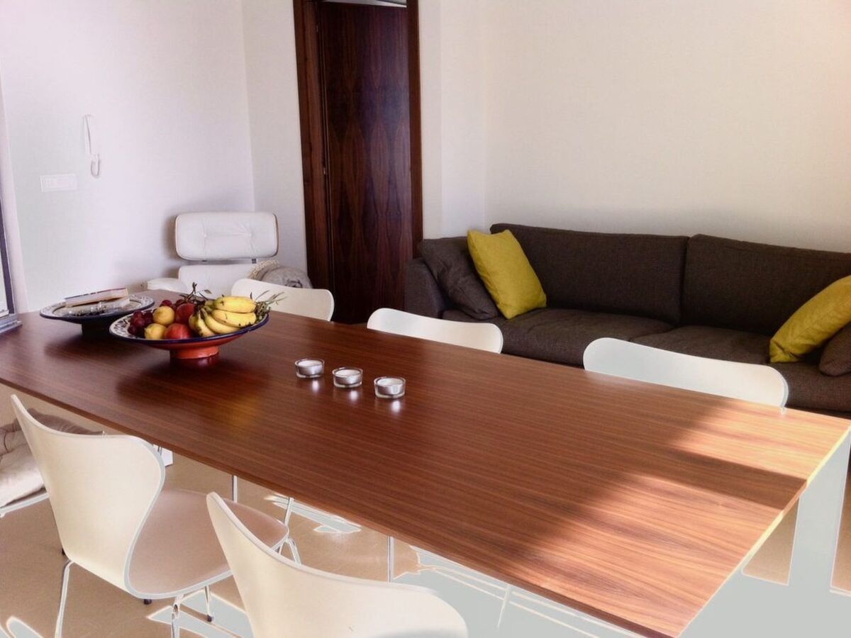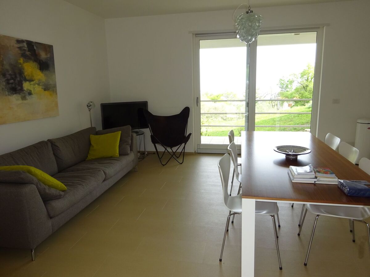 Ground floor 90m²: Modernly furnished luxury living/dining room with sofa and armchairs, dining table and 6 chairs.