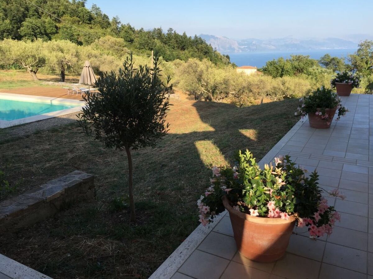 The garden is 10000 m² with olive trees, vines, fruit trees and wild flowers, including wild orchids.
