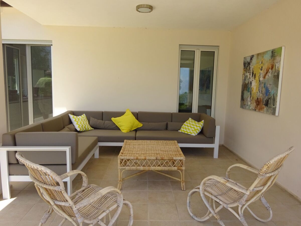 The spacious main house consists of an 80 m² living room with modern furnishings.
