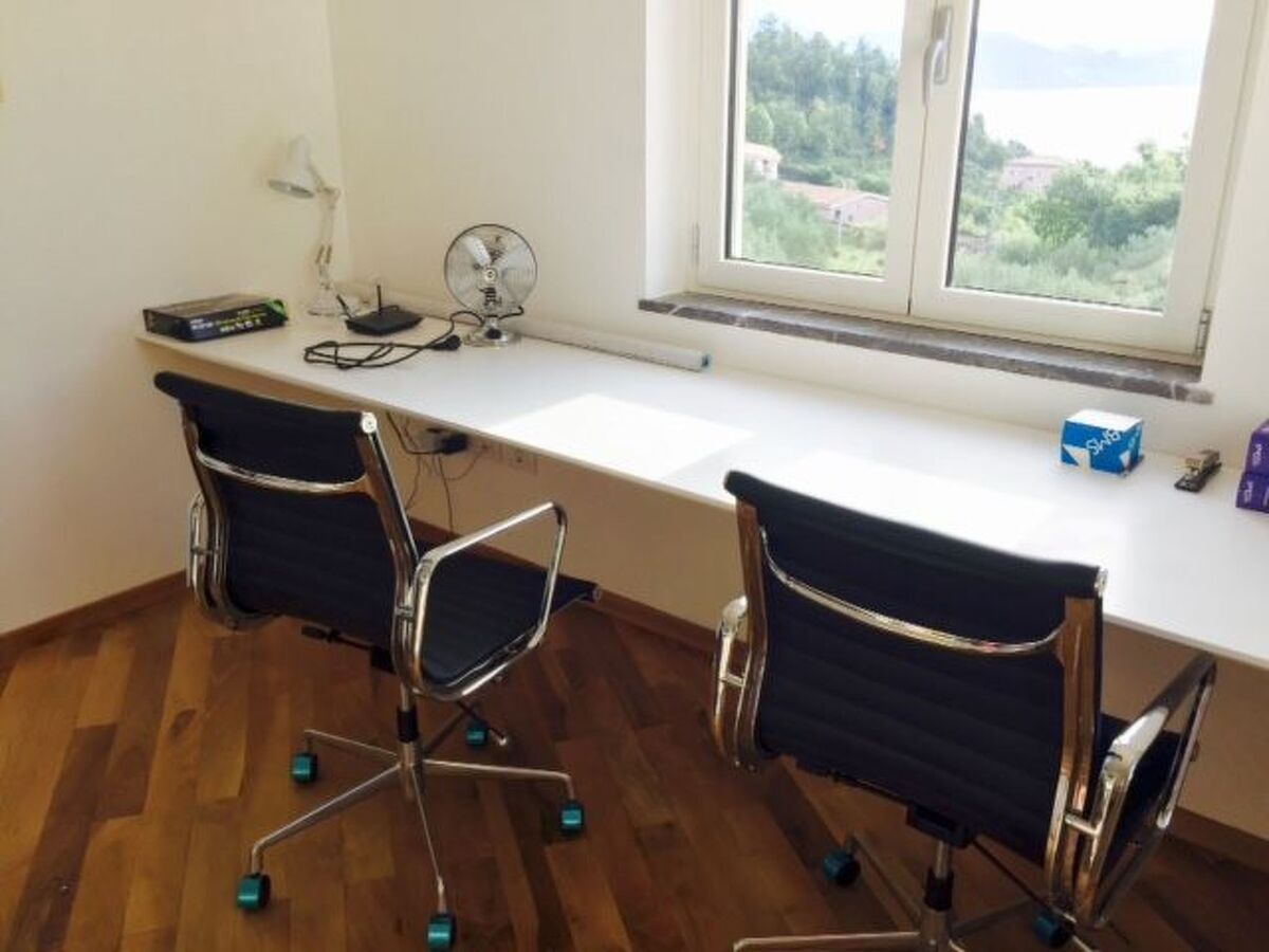 The other bedroom in the main house also has a double bed, a desk and a walk-in bathroom with double shower, toilet, bidet and washbasin.