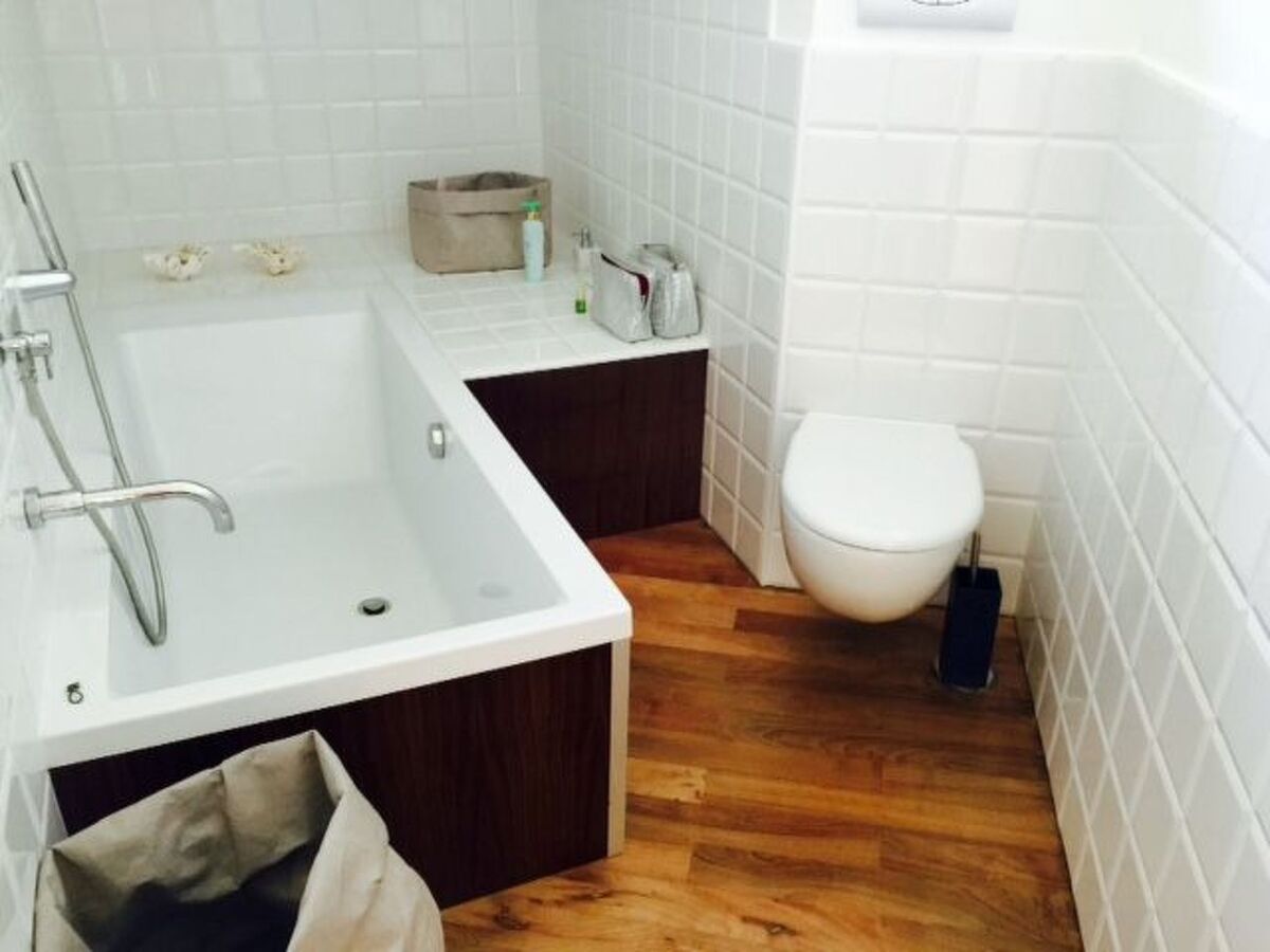 Further adjacent bathroom with bathtub, shower, washbasin and toilet.