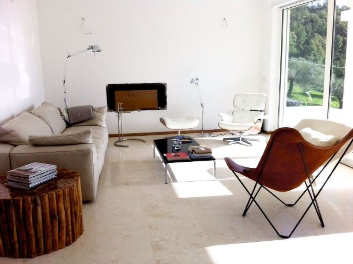 Design villa with breathtaking views over the Golfo di Policastro and the hills of Scario This modern house consists of a main house and a guest house.
