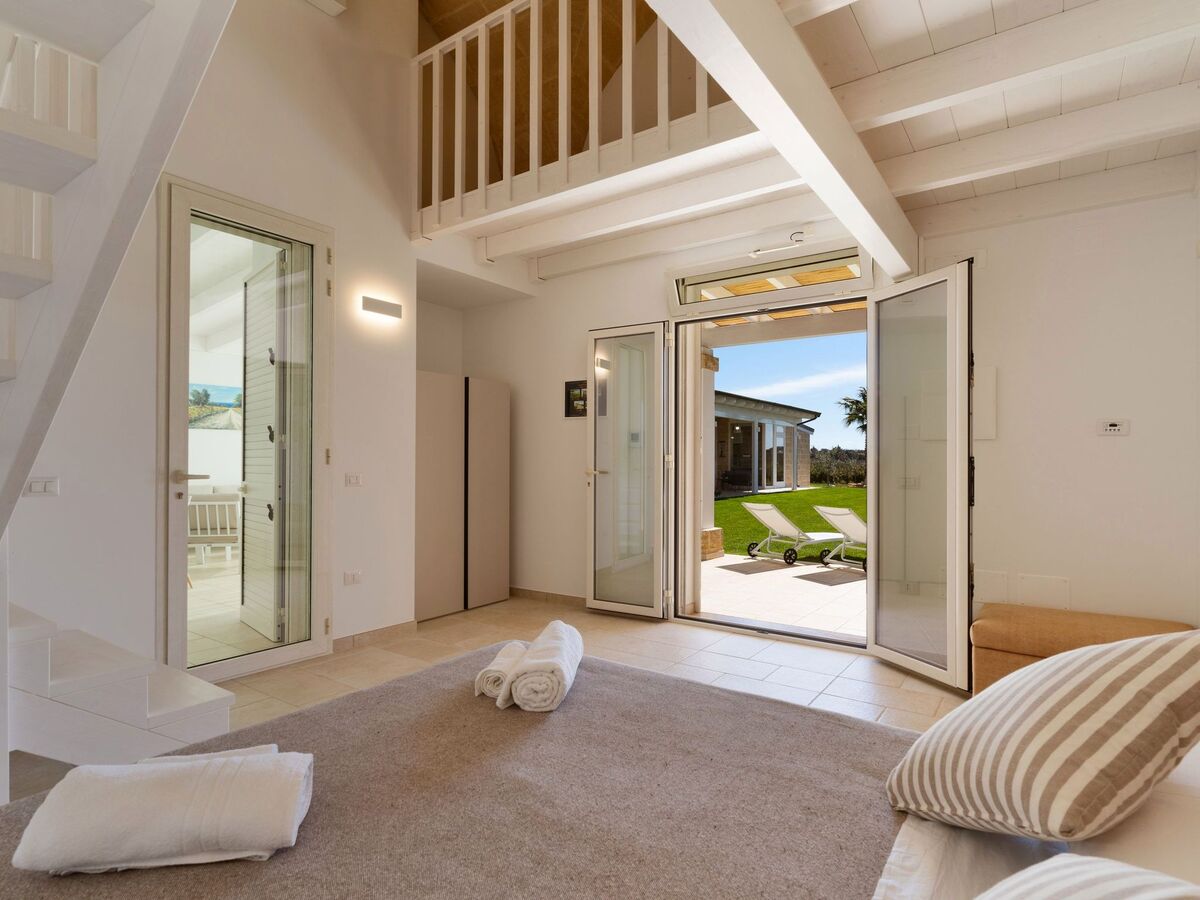 The outside area is equipped with sun loungers, barbecue, outdoor shower and there is a relaxation area with a professional kitchen for pleasant outdoor dinners or lunches organised by the property with a local professional cook.
