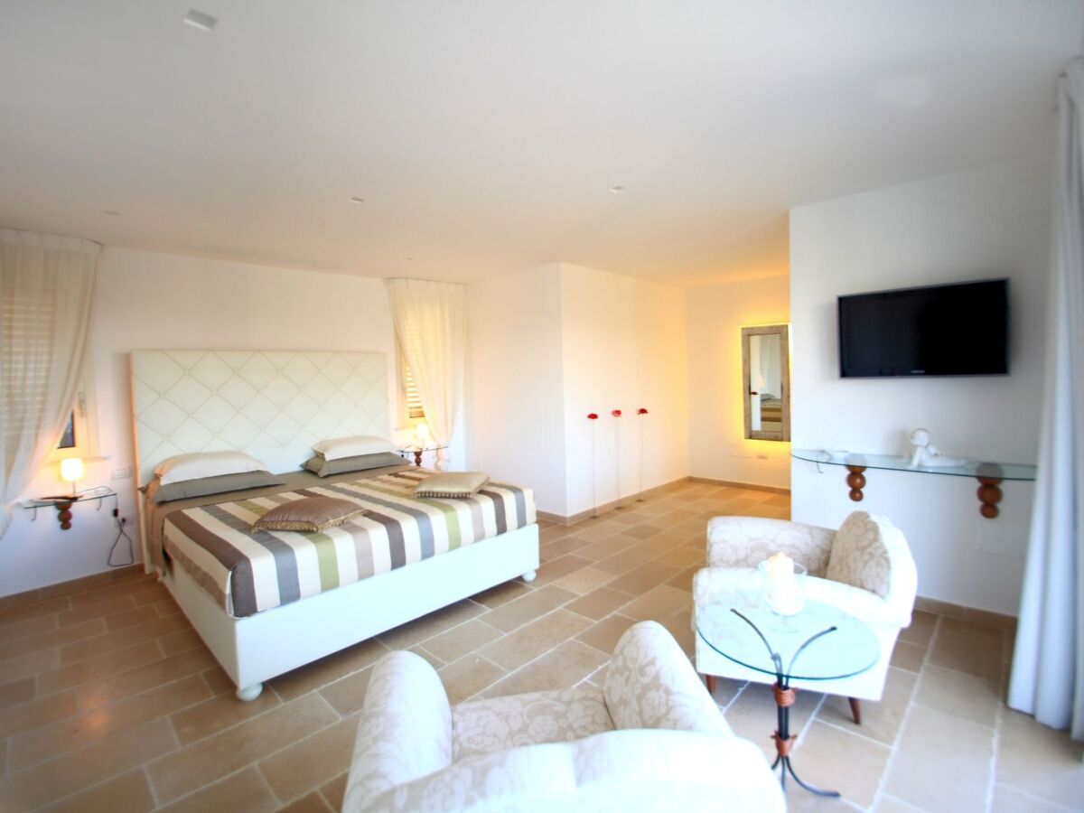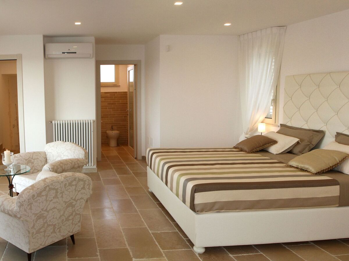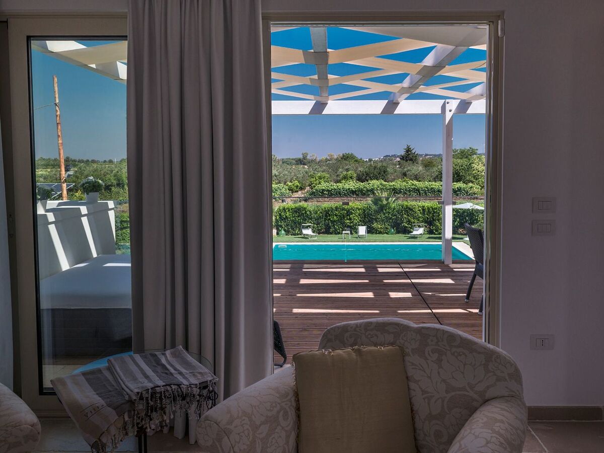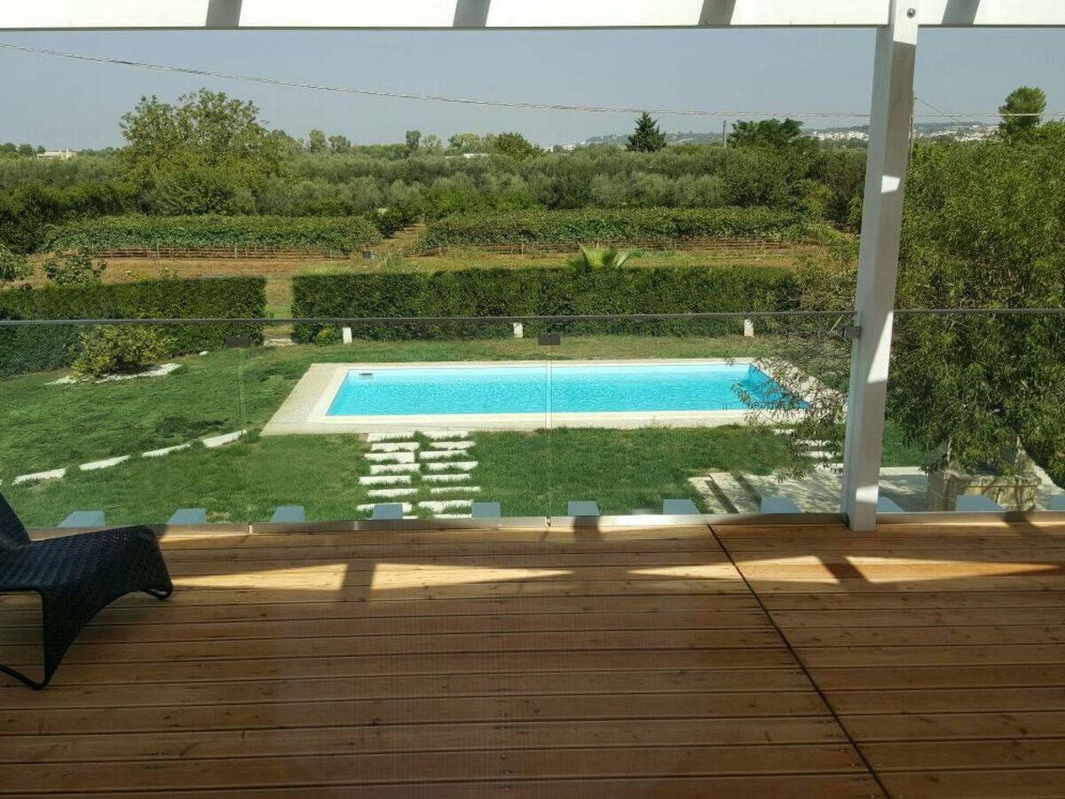 The large swimming pool is bordered by an area of approximately 500 square metres of lawn, a garden with various types of plants typical of the Mediterranean maquis, as well as an area used as an orchard, vineyard (with varieties of negro amaro, montepulciano and black and white malvasia) and olive grove.
