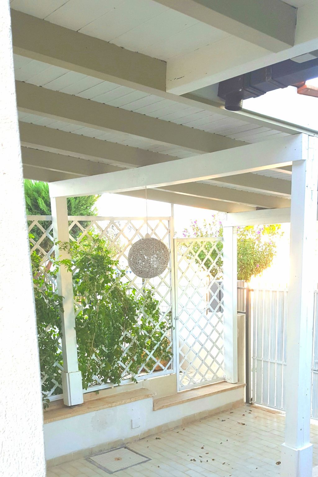 In the front of the house there are terraces and a pergola with garden furniture and a staircase leading to the terrace where there is a good view of the sea.