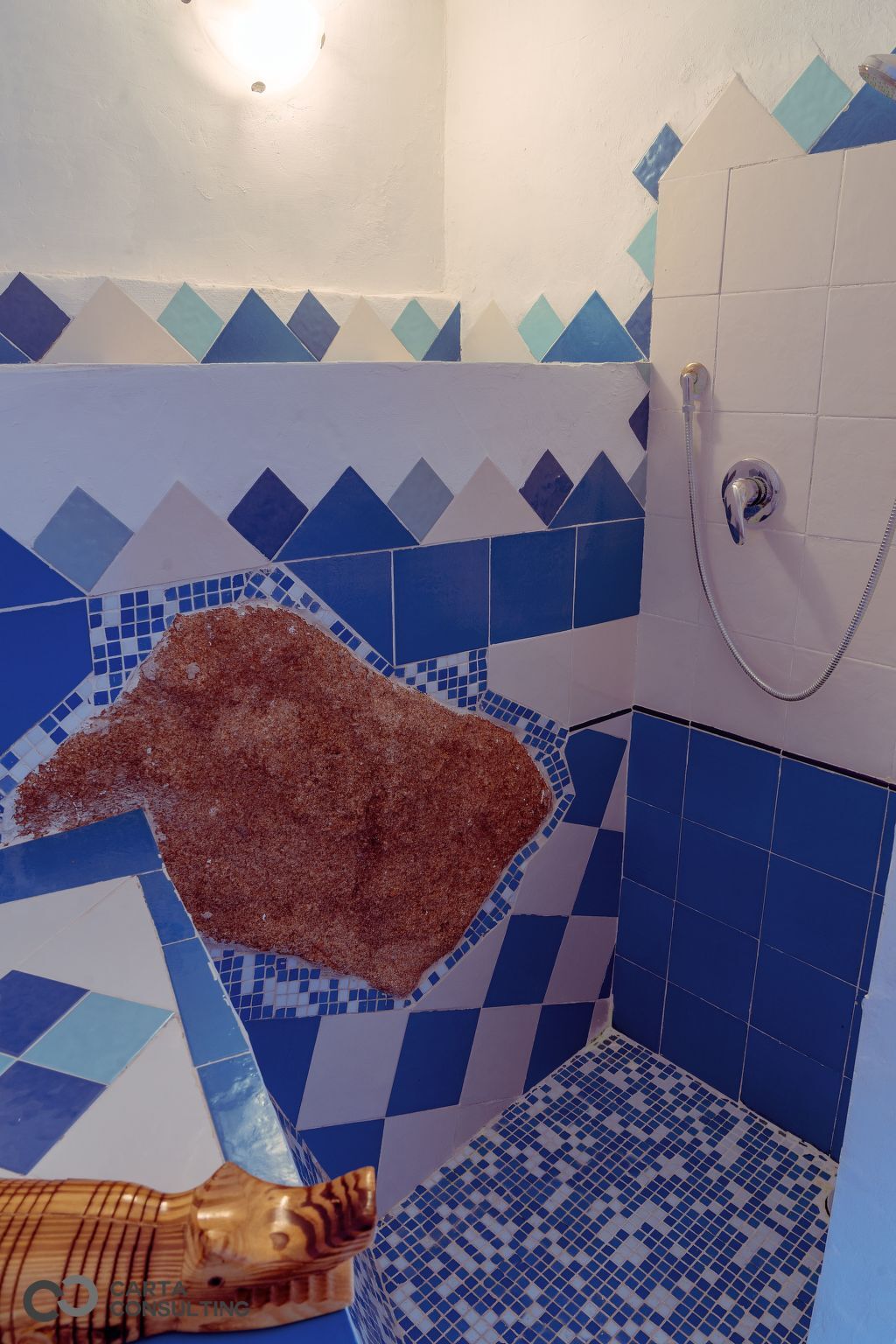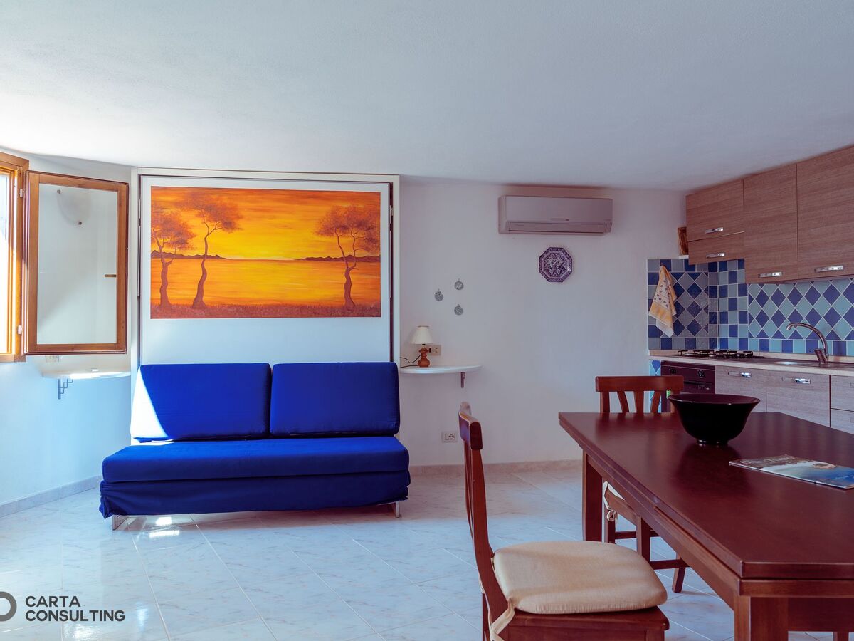 amazing studio with folding bed, plus two sofa beds (o/w one queen size), kitchenette (with fridge/freezer), A/C, dt/Sat TV, water reserve (4,000 lt) and bathroom entirely carved into the rock in pure style “Costa Smeralda” with shower.