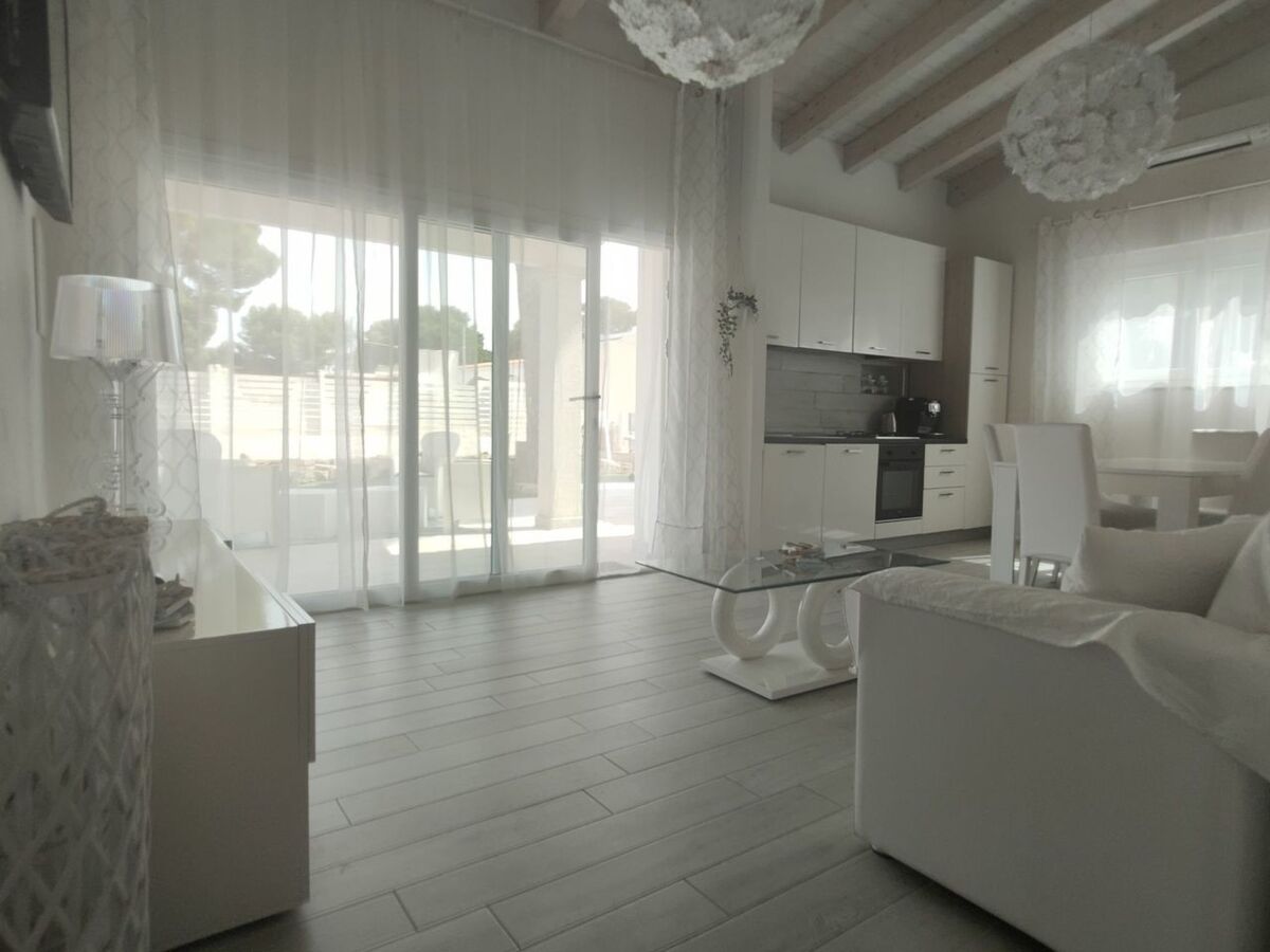 A spacious living area, which opens directly onto an outdoor veranda, is perfect for relaxing moments in company.