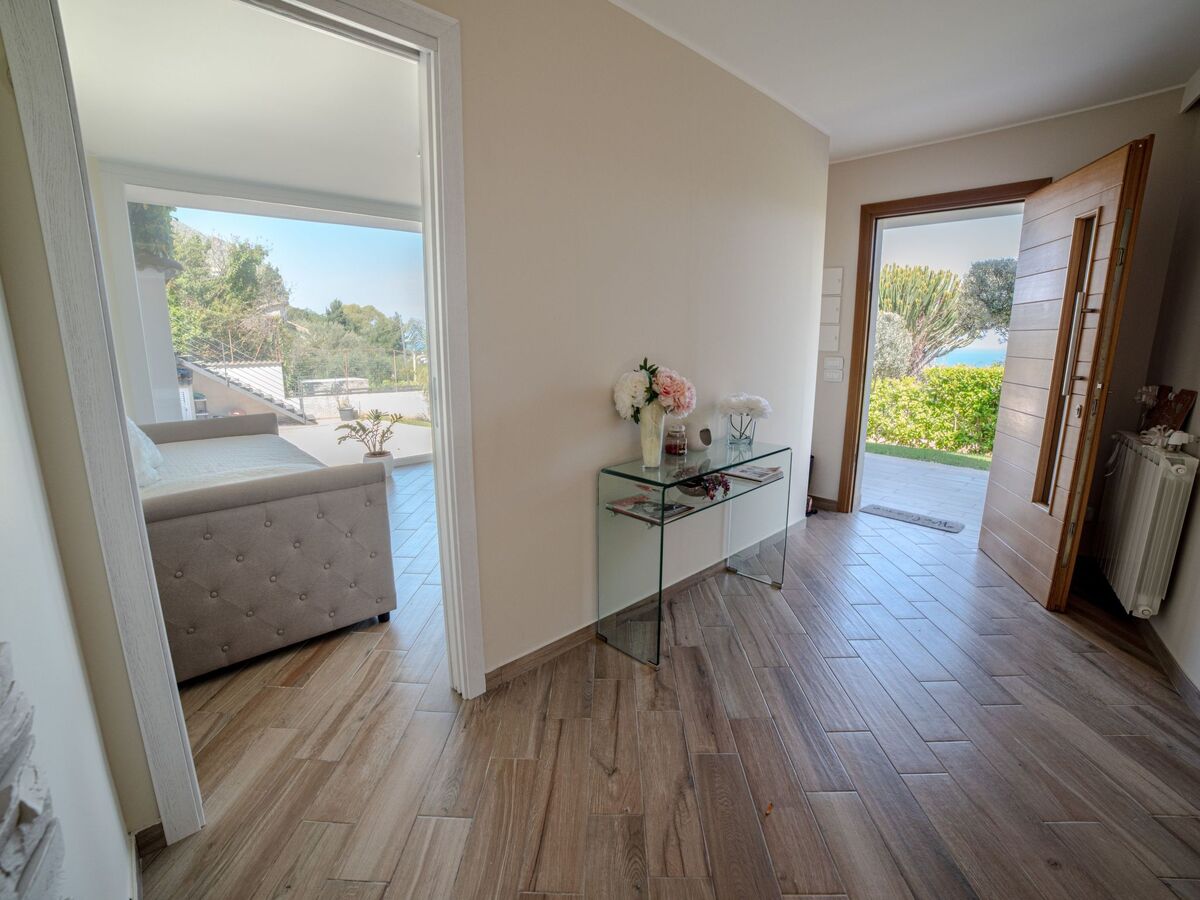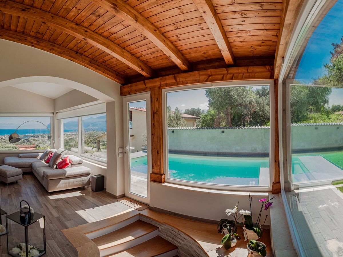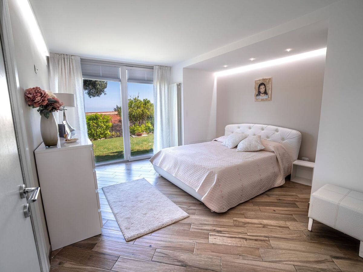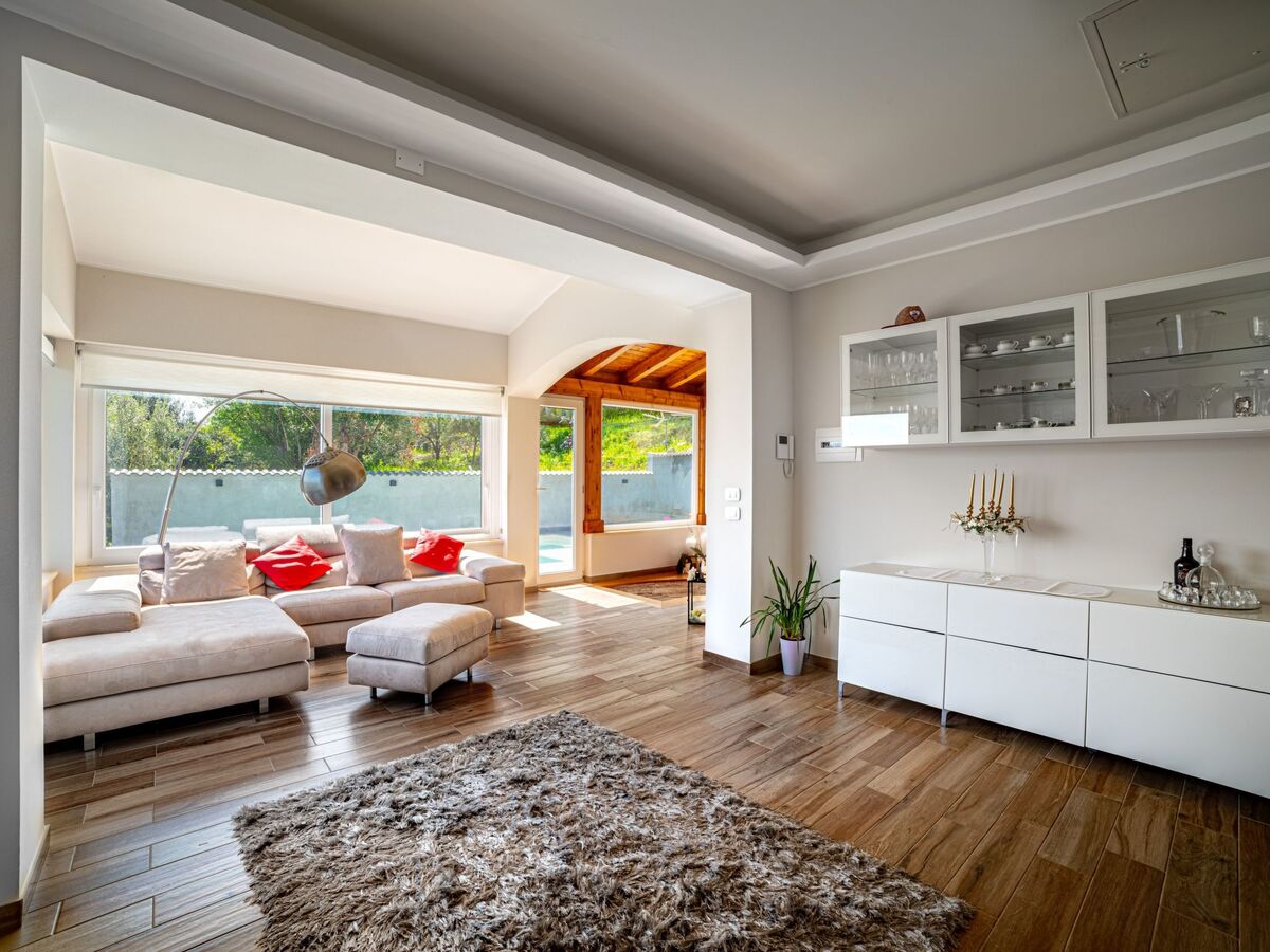 The villa, open on all four sides, spread over two levels and is surrounded by a beautiful and lush garden, with lawn and ornamental and fruit trees.The pool area is nothing short of amazing, with the possibility of swimming while admiring the fantastic panorama of the sea as far as the eye can see.The same view can be admired from virtually every point of the house, including the terrace under a cool porch, equipped with dining table and barbecue.