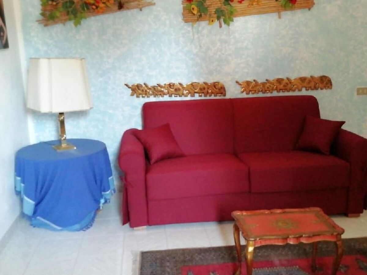 The flat has a kitchen-living room with gas cooker, oven, refrigerator with freezer, a living room with sofa bed, TV, a bedroom with double bed and on request baby cot or single bed, a bathroom with bath/shower, bidet, WC.