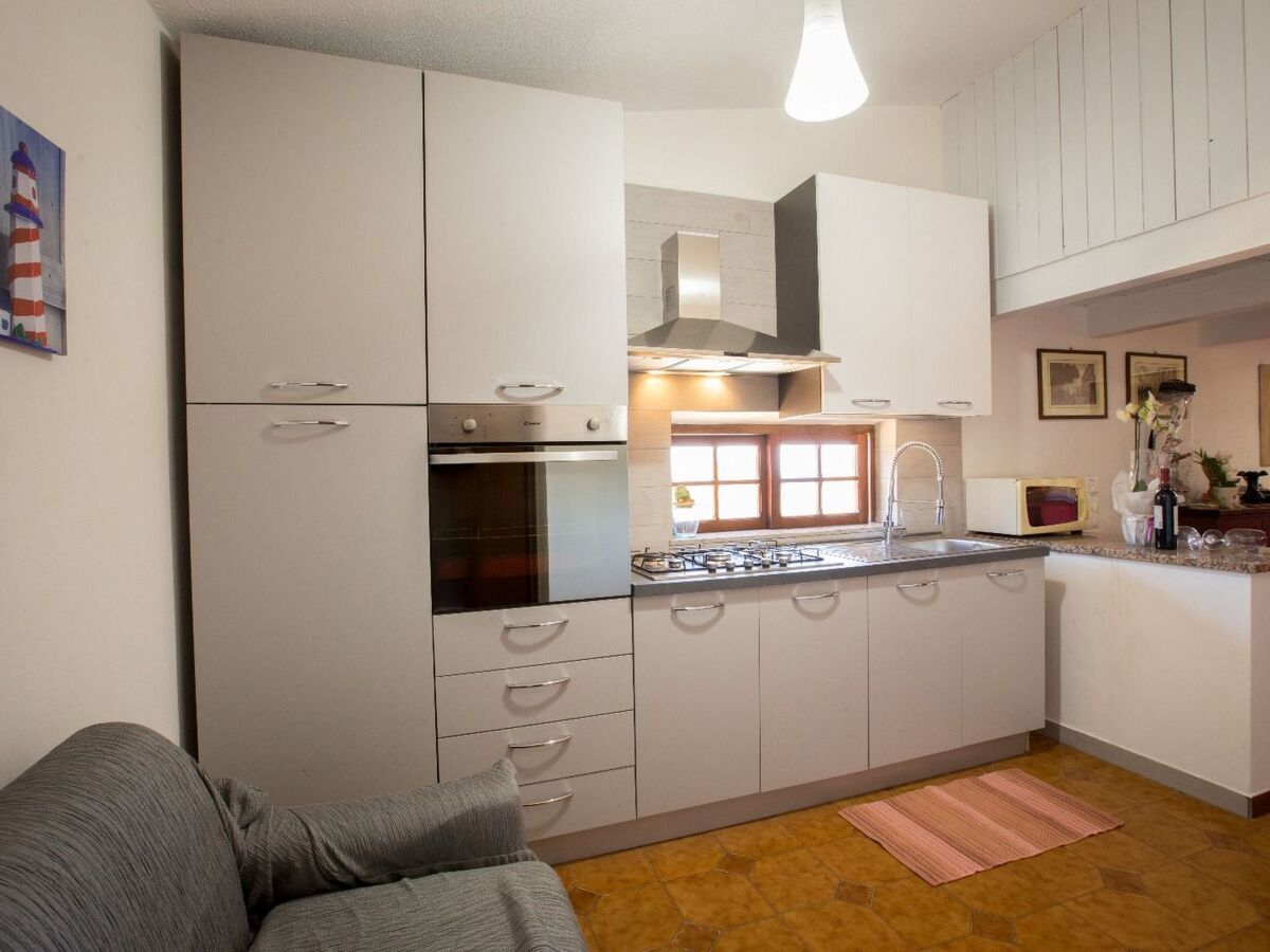 Separated by a wall, there is also a fully equipped open-plan kitchen with a window, equipped with a gas cooker, oven, refrigerator, microwave and juicer.