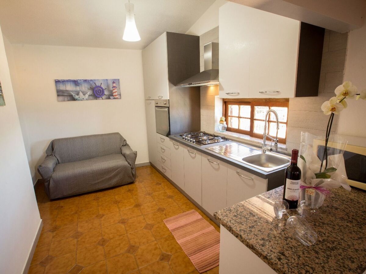 It is located on the first floor of a detached house, about 300 metres from the sea and the famous pebble beach of Baia la Guidaloca.