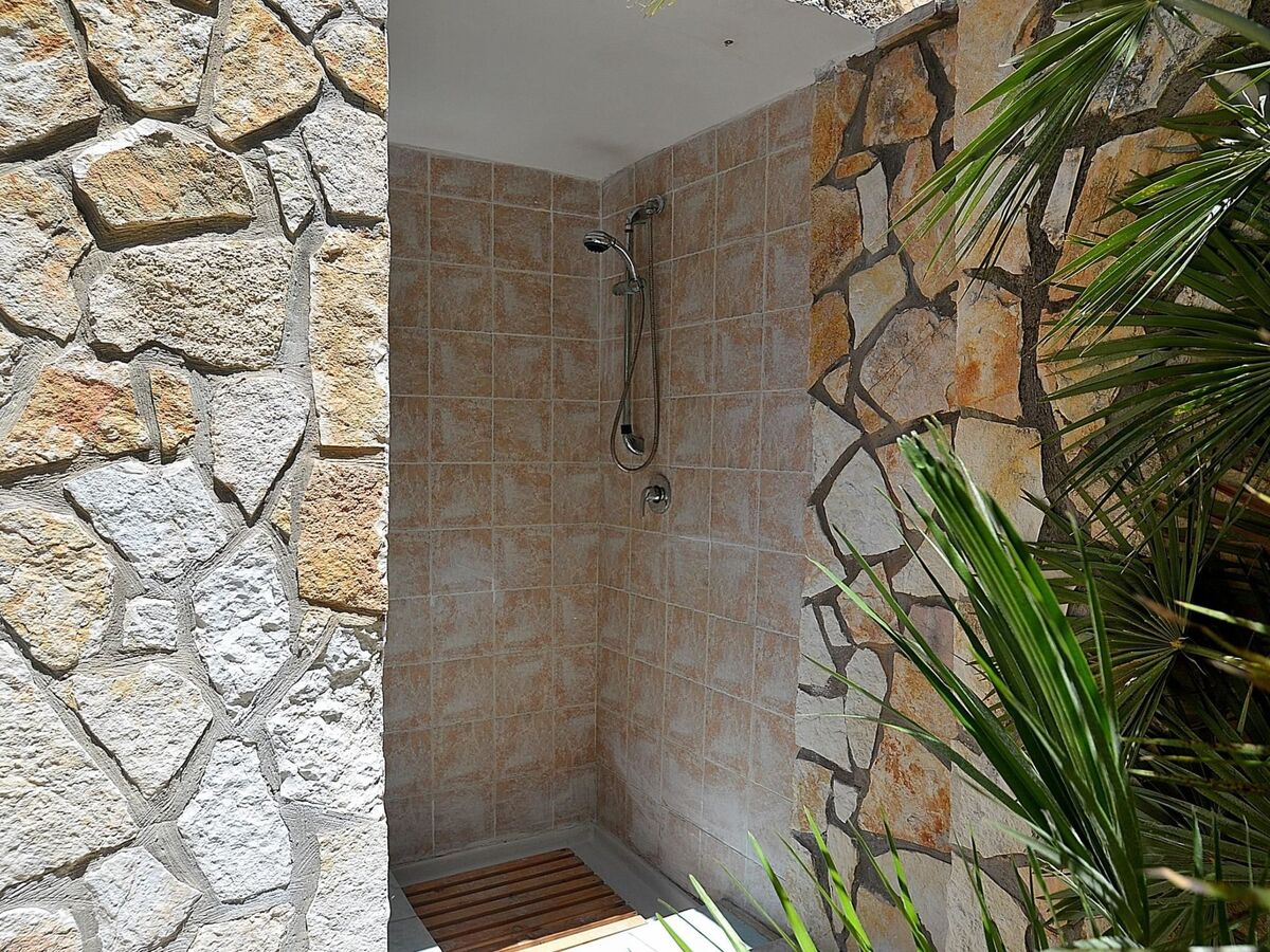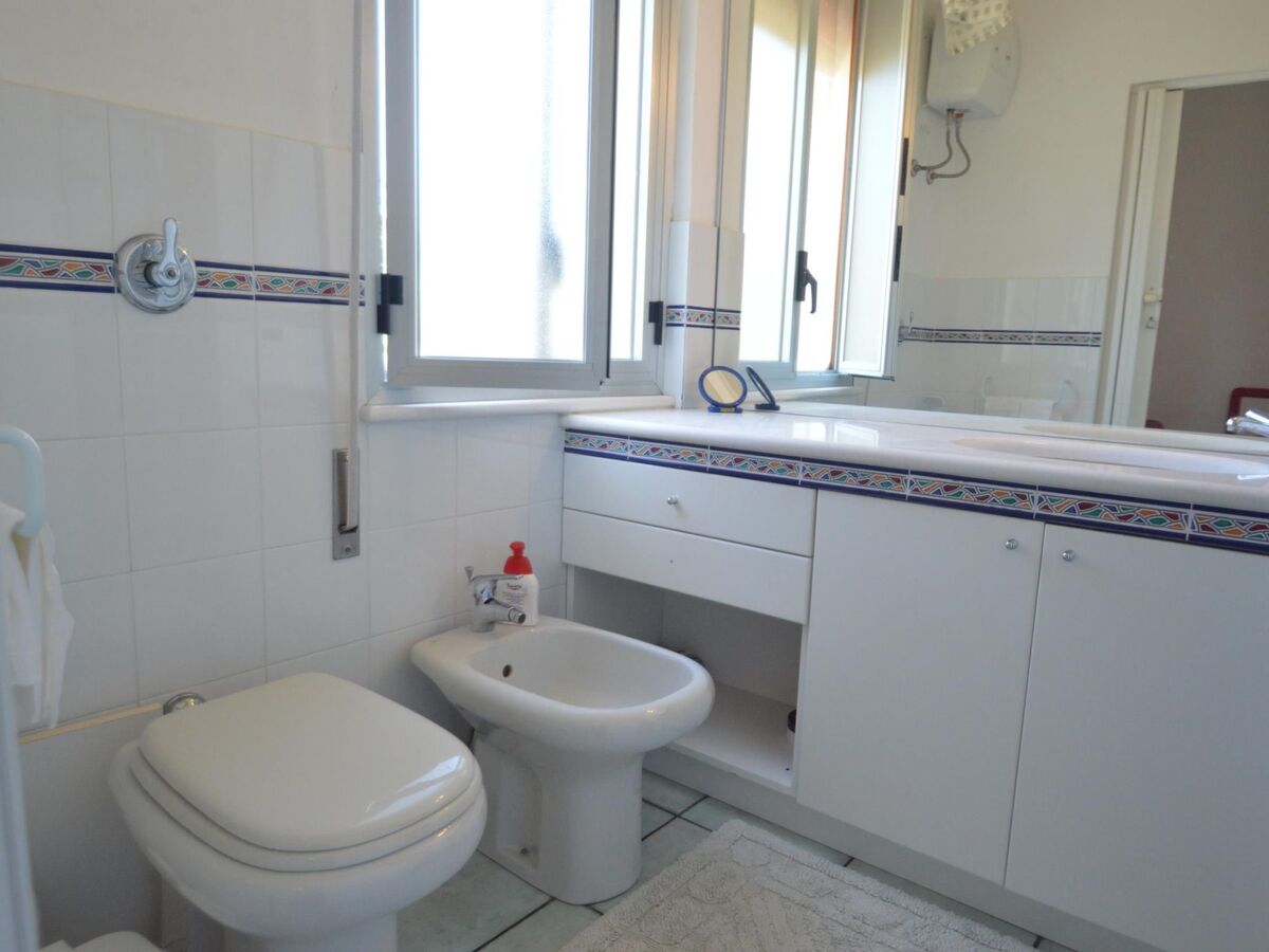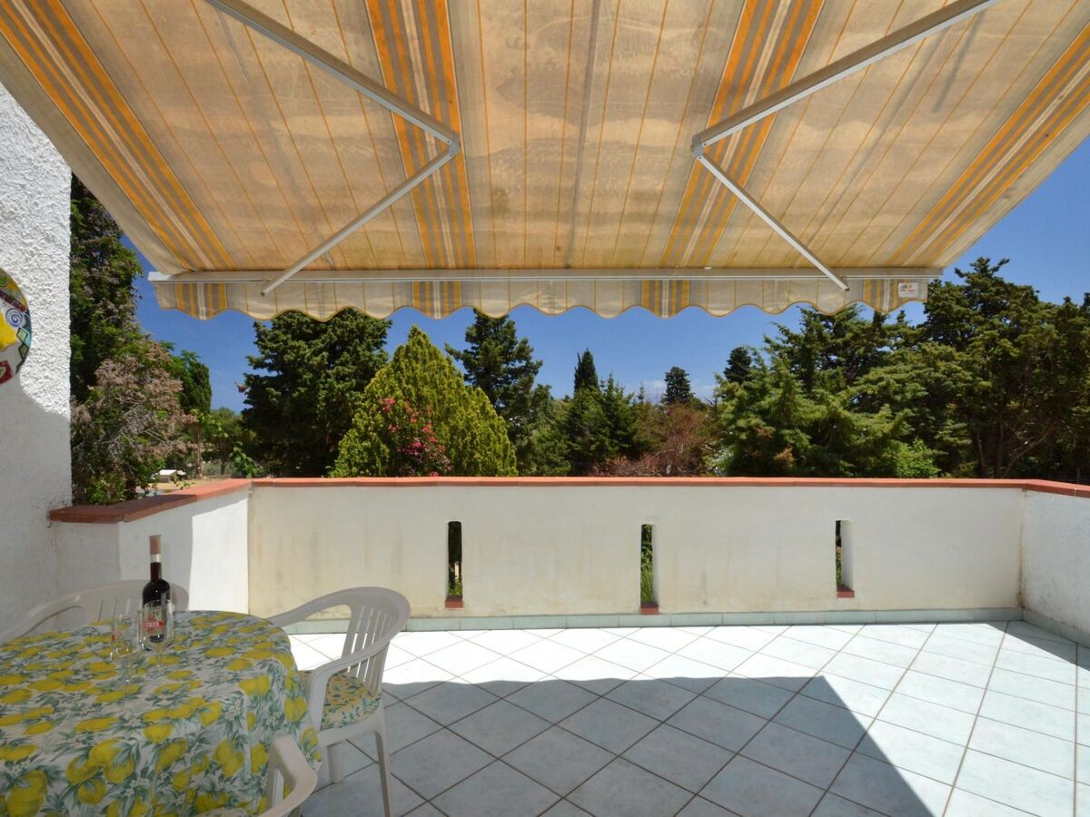 On the first floor is a spacious veranda with a removable canopy overlooking the beautiful vegetation of Mediterranean flowers and pine trees.
