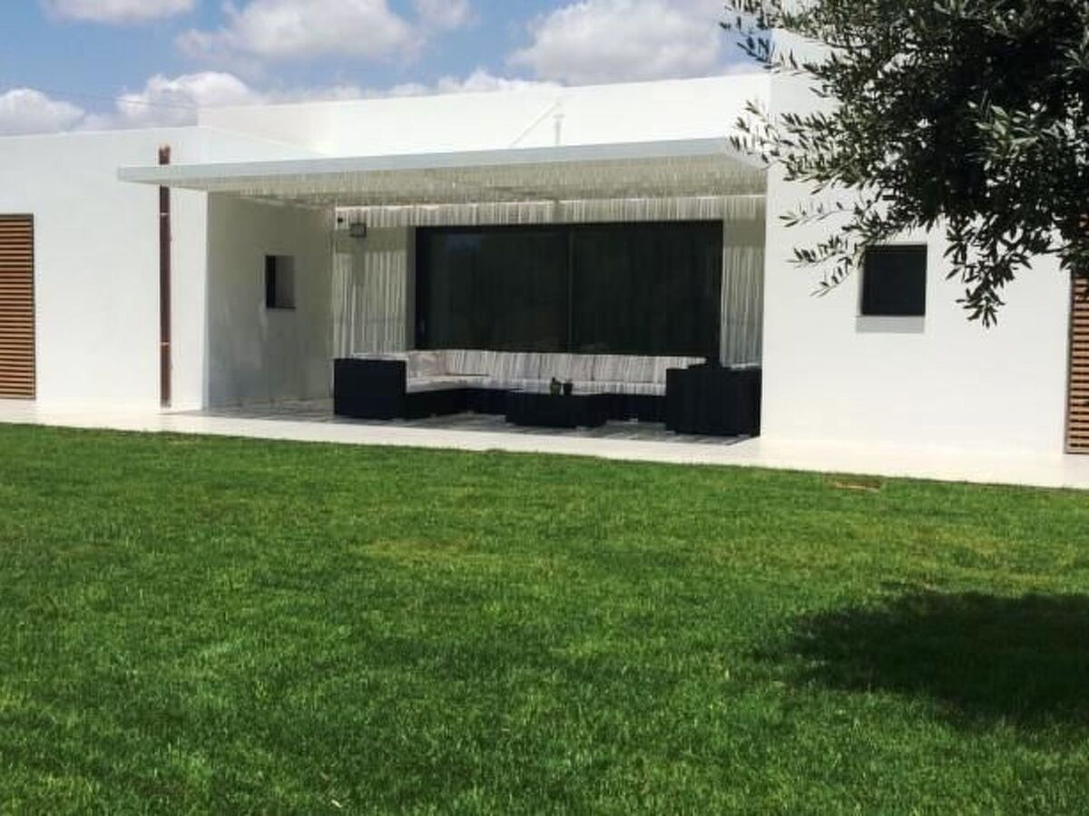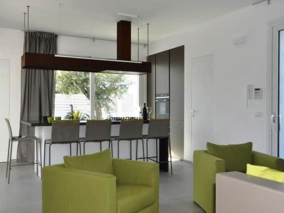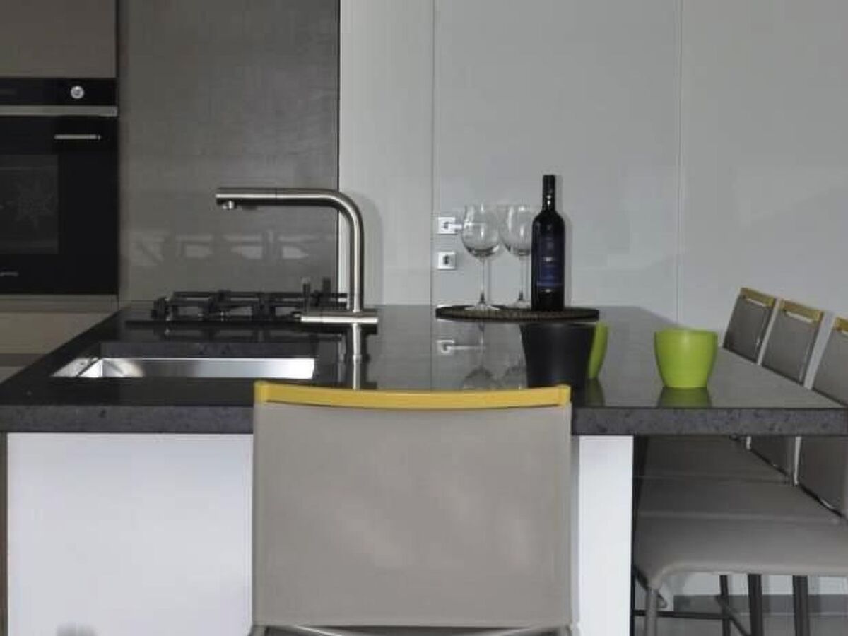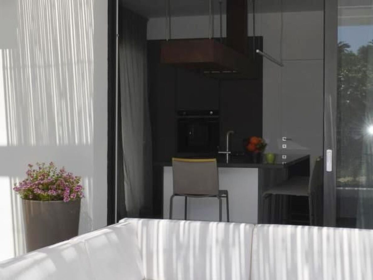 Two bedrooms with private access to the garden and en-suite bathroom / WC with shower, large panoramic windows that provide a bright living atmosphere, a large living room with a kitchen island and cosy sofas.