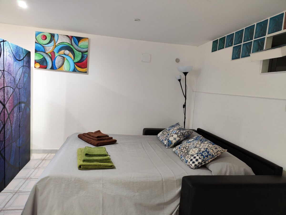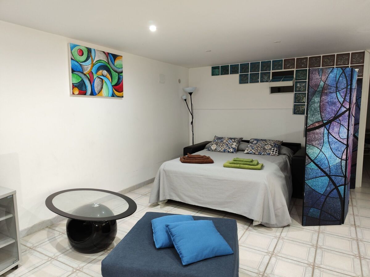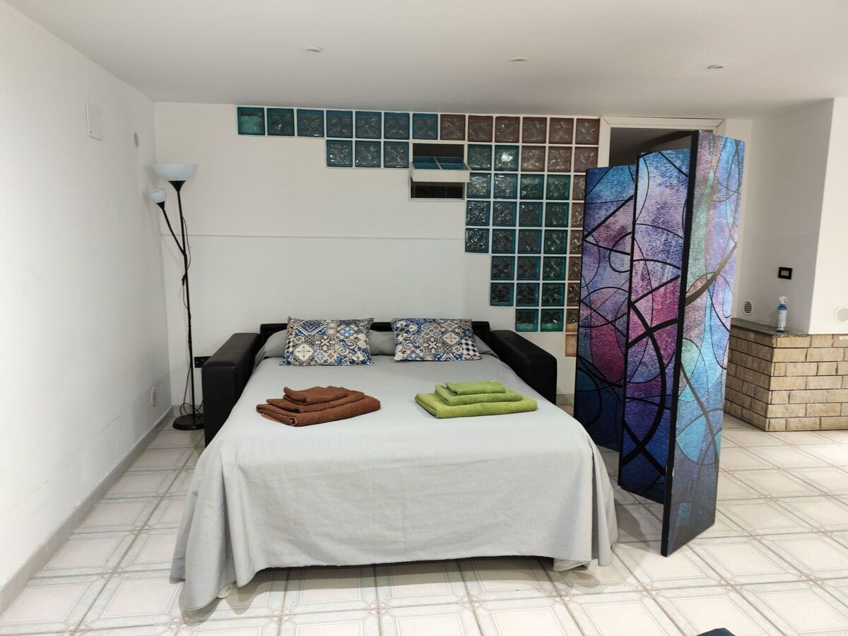 It is conceived as a modern open space with a large living room with an open kitchen and a double bedroom in the centre.