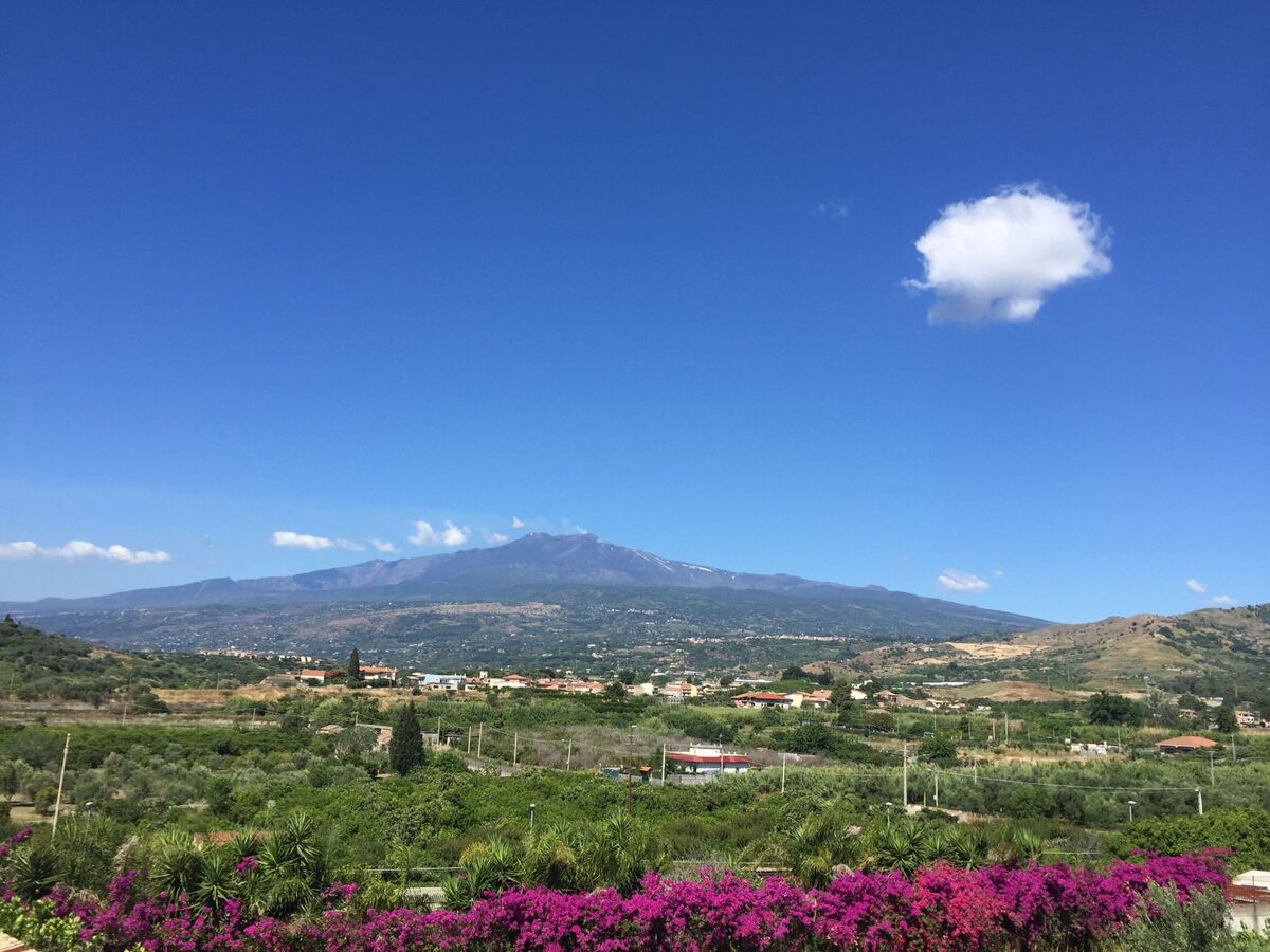 Panoramic views of Mount Etna and Taormina.