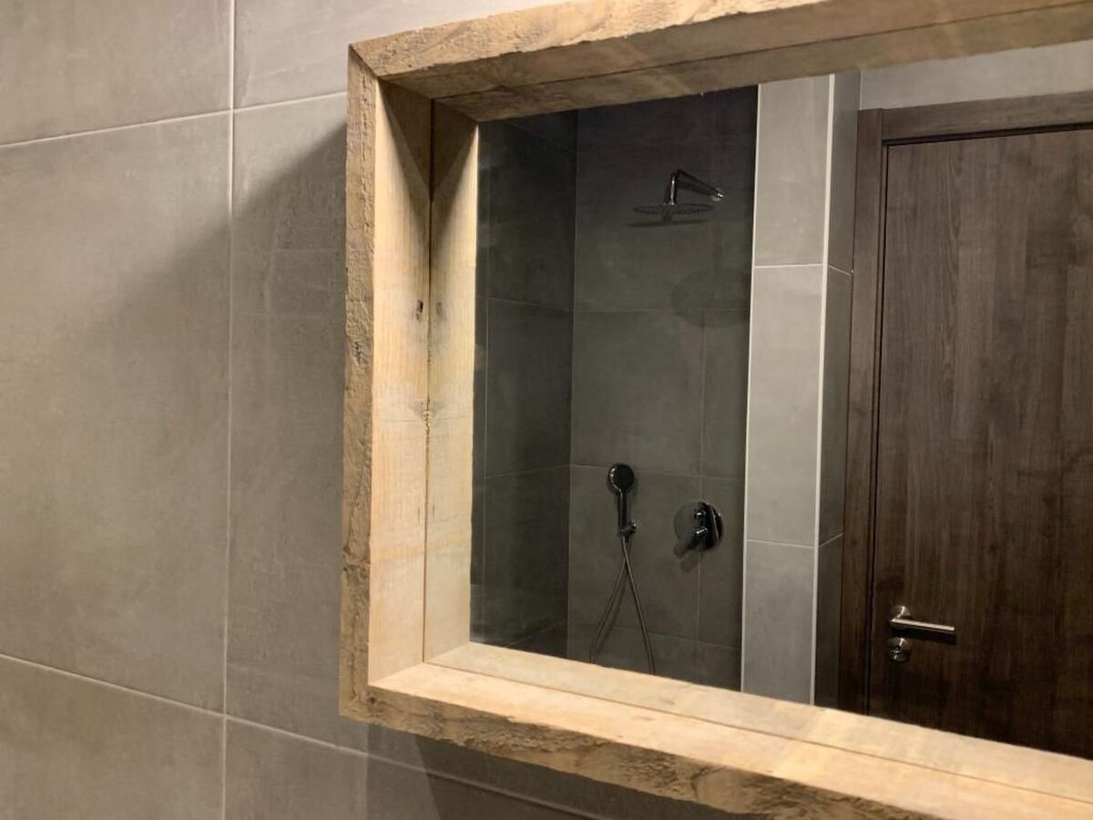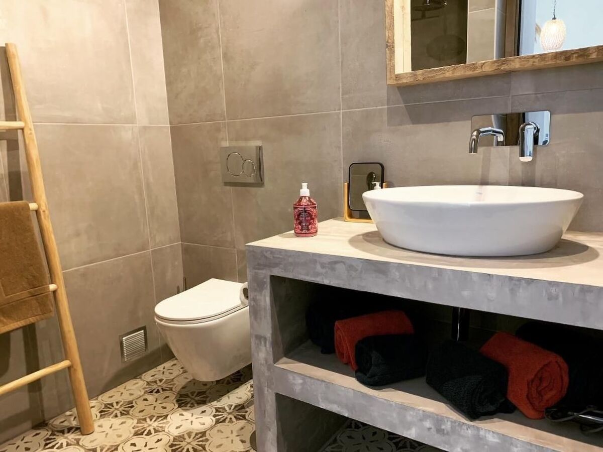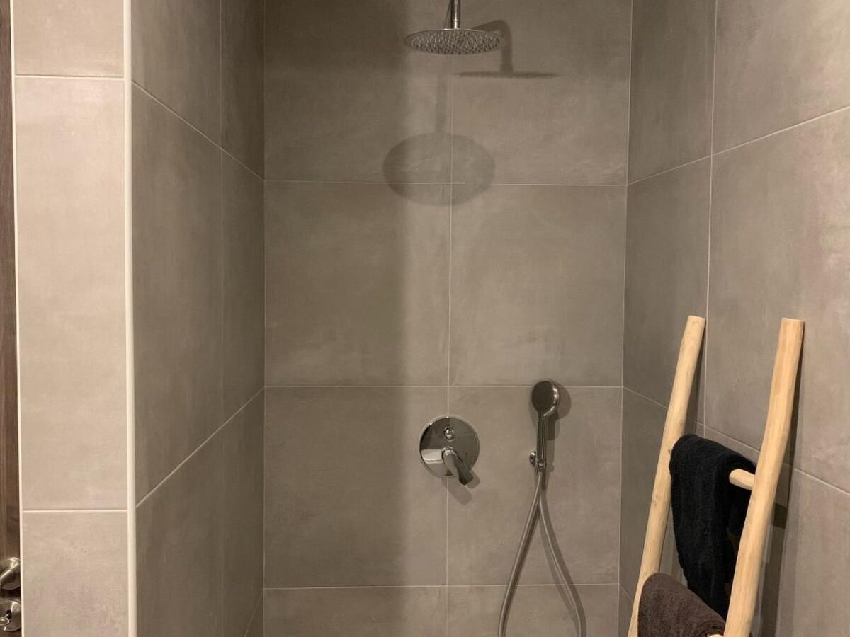 * Bathroom with shower, toilet, washbasin and hairdryer