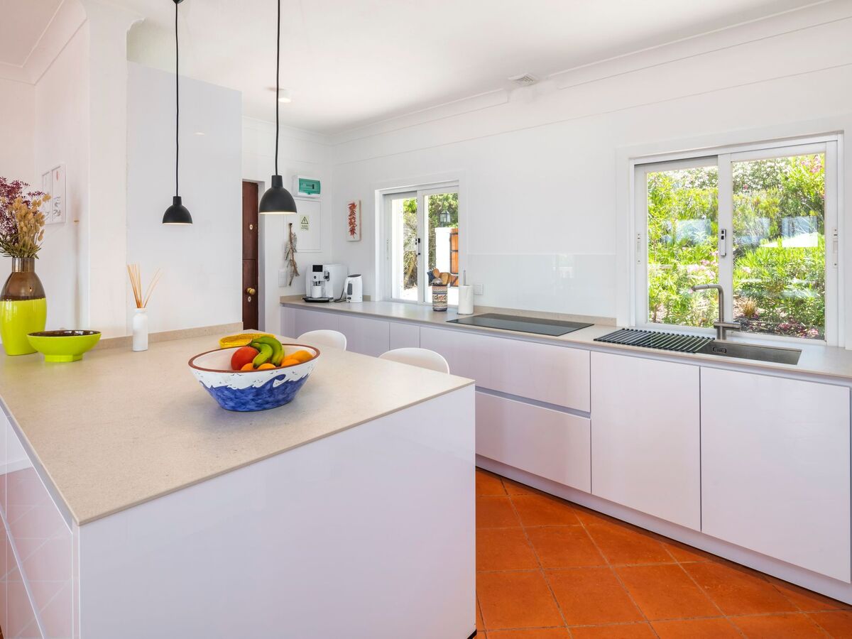 The kitchen is spacious and has all the equipment you need like a dishwasher, washing machine, oven, coffeemaker and a fridge.