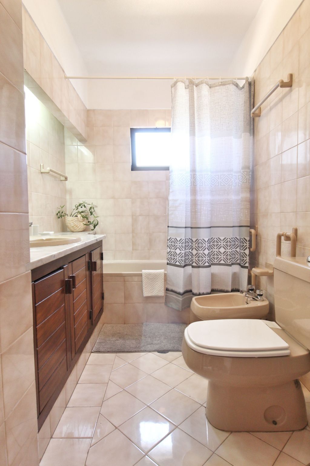 Furnishing in typical old portugiese style but very clean with privat car-board, rooftop and small garden.