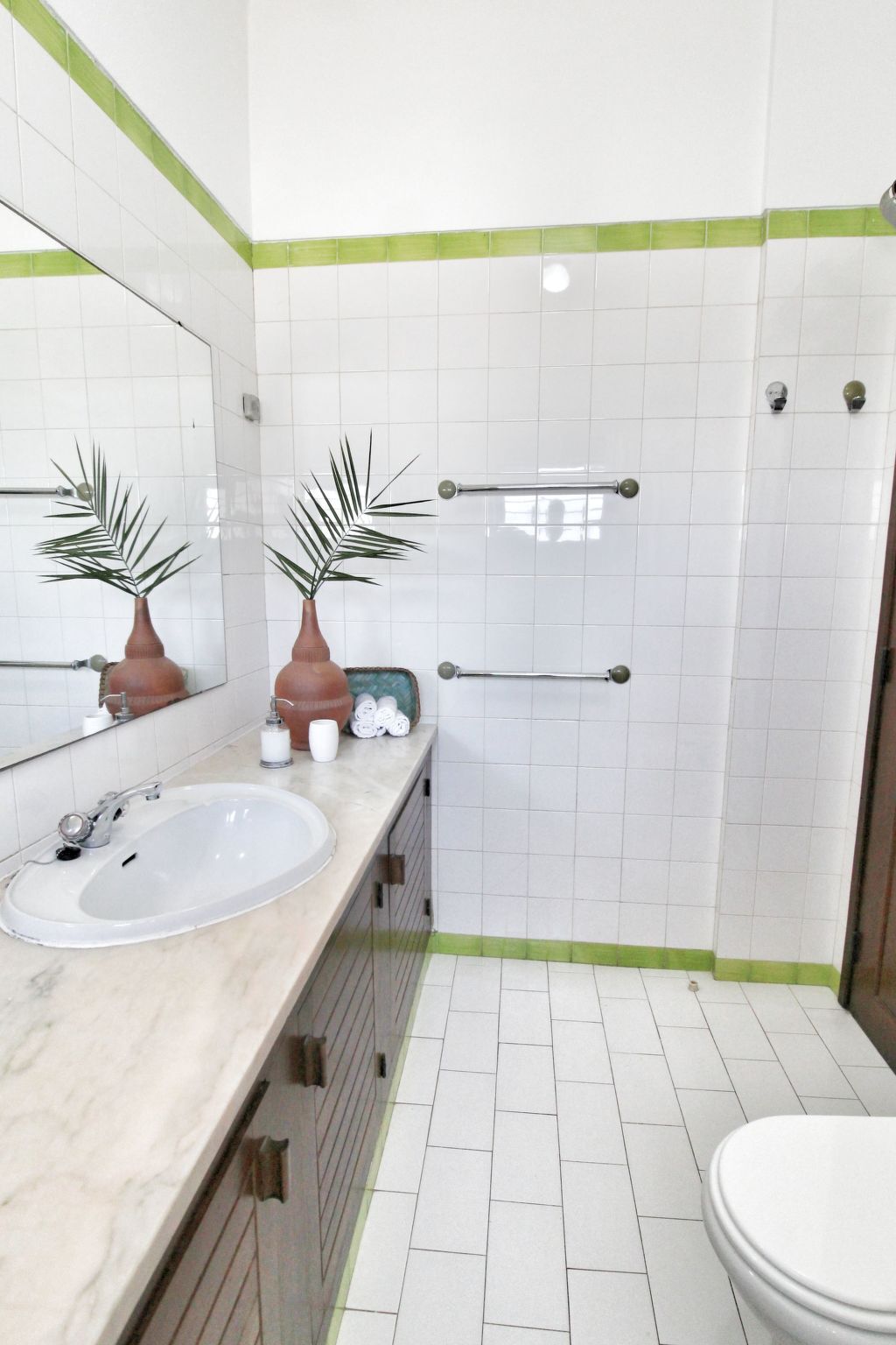 Furnishing in typical old portugiese style but very clean with privat car-board, rooftop and small garden.