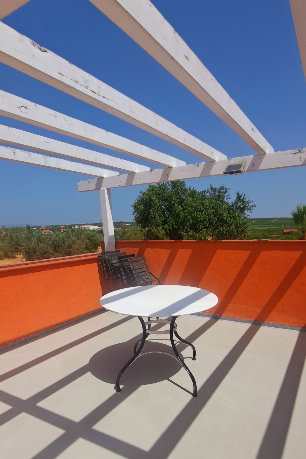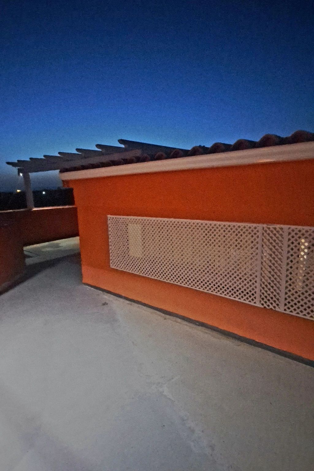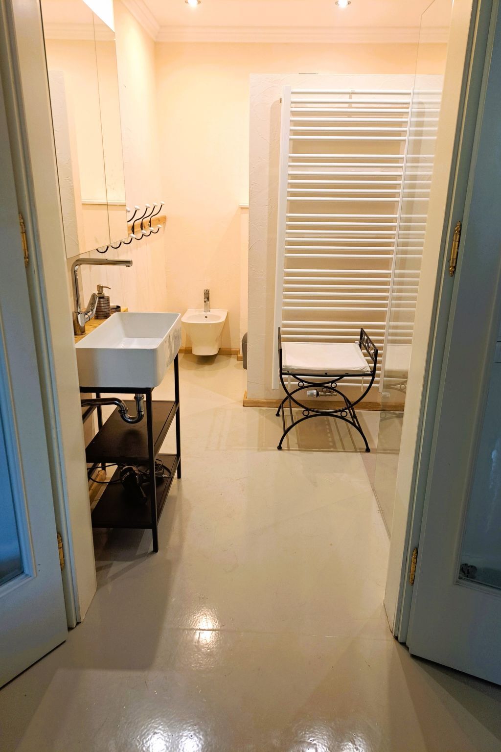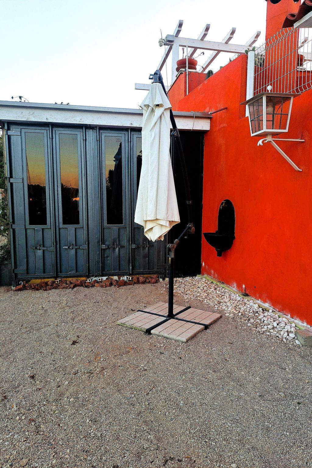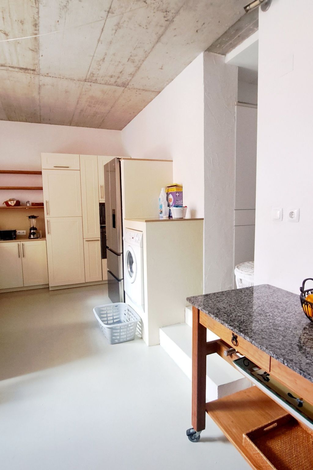 From the kitchen you can access the sheltered patio, where the outside staircase to the roof terrace is located.