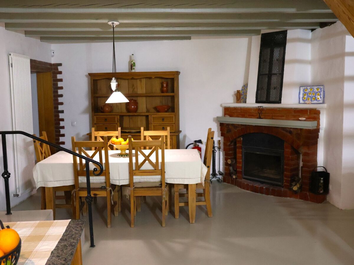 On the ground floor there is a large living room: dining area with fireplace and open-plan kitchen.