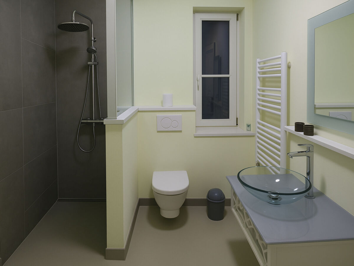 On the ground floor there are 2 separate sleeping areas with their own bathrooms.