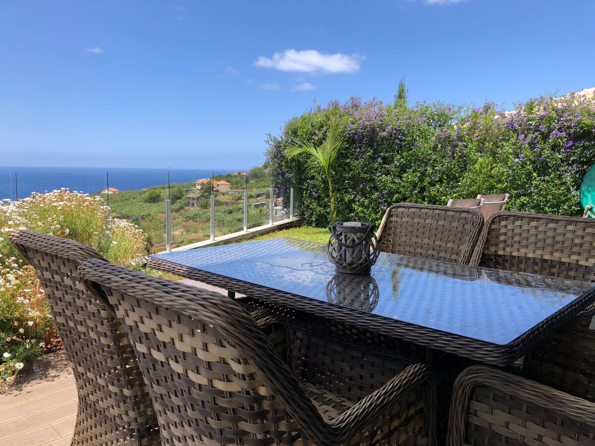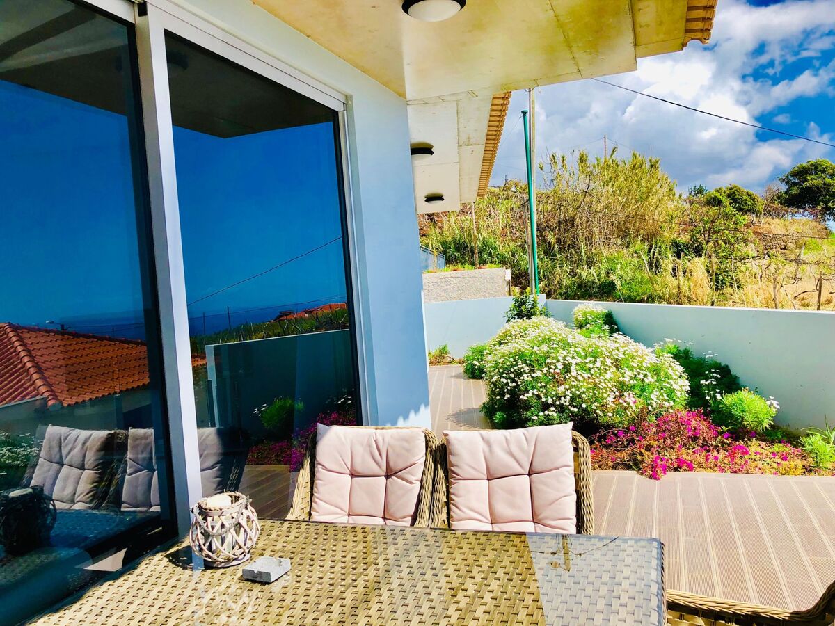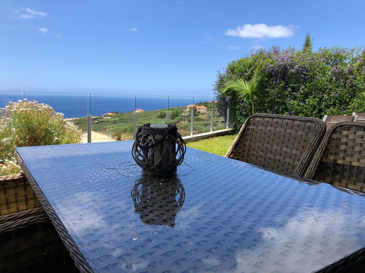 The holiday house sits on the hillside overlooking the pretty village of Estreito da Calheta along the South West coast of Madeira.