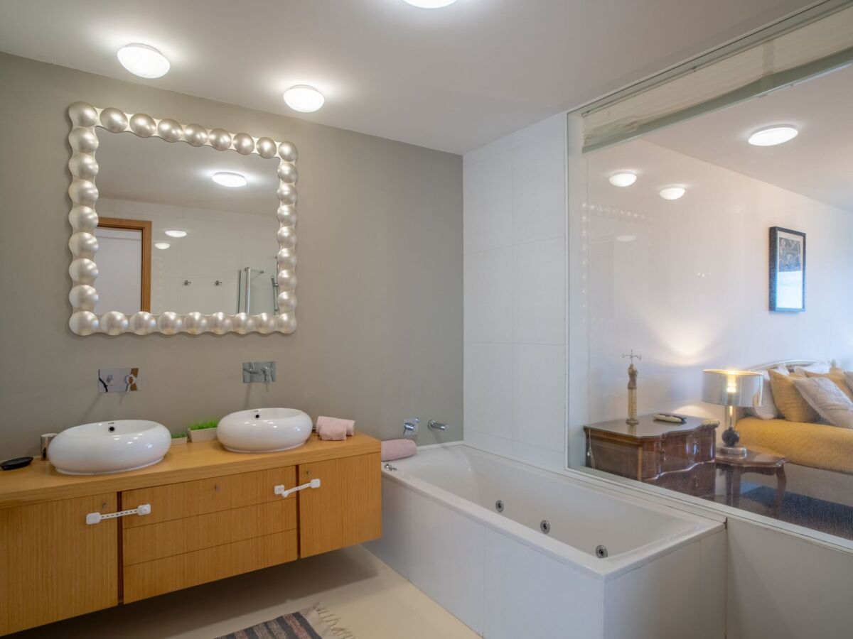 4 comfortable bedrooms and ultra-modern bathrooms are on the upper floor, while the living room, the kitchen and another bathroom on the ground floor.